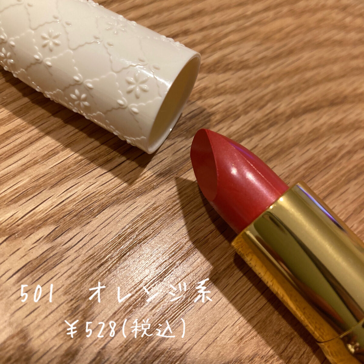 - しっかり色づき落ちにくい口紅。 つけたての鮮やかな発色が長時間続き、唇を美しく彩ります。 保湿成分(スクワラン、ローヤルゼリーエキス)配合で、うるおいを守り、唇のカサつき・荒れを防ぎます。
