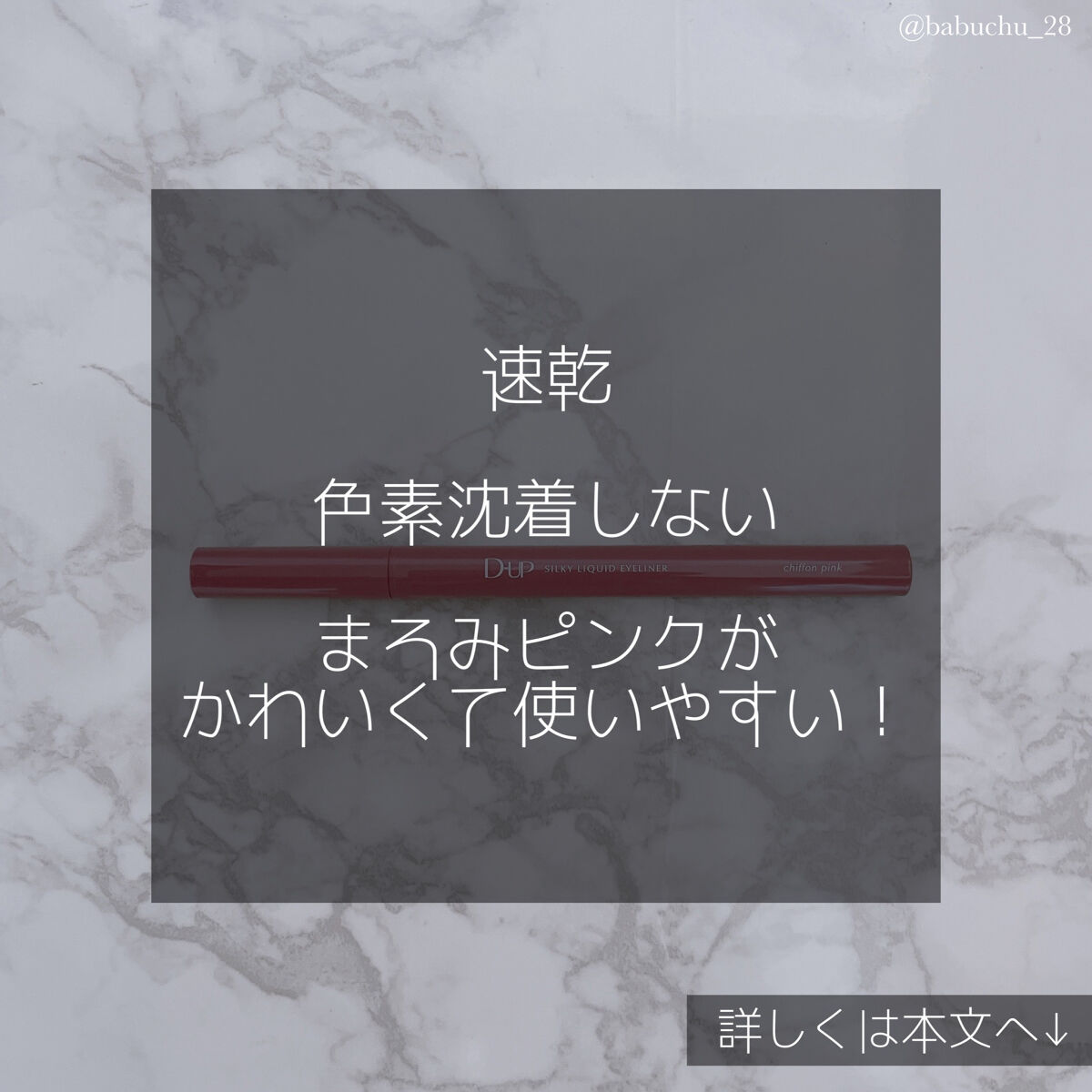 〈D-UP〉·シルキーリキッドアイライナーWP(BRBKブラウンブラック)D-UPのシルキーリキッドアイライナーWPはかすれにくく描きやすくて高発色で、にじみにくくキープしてくれるのでお気に入りでもぅ何本もリピートしています。公式によると…ク...