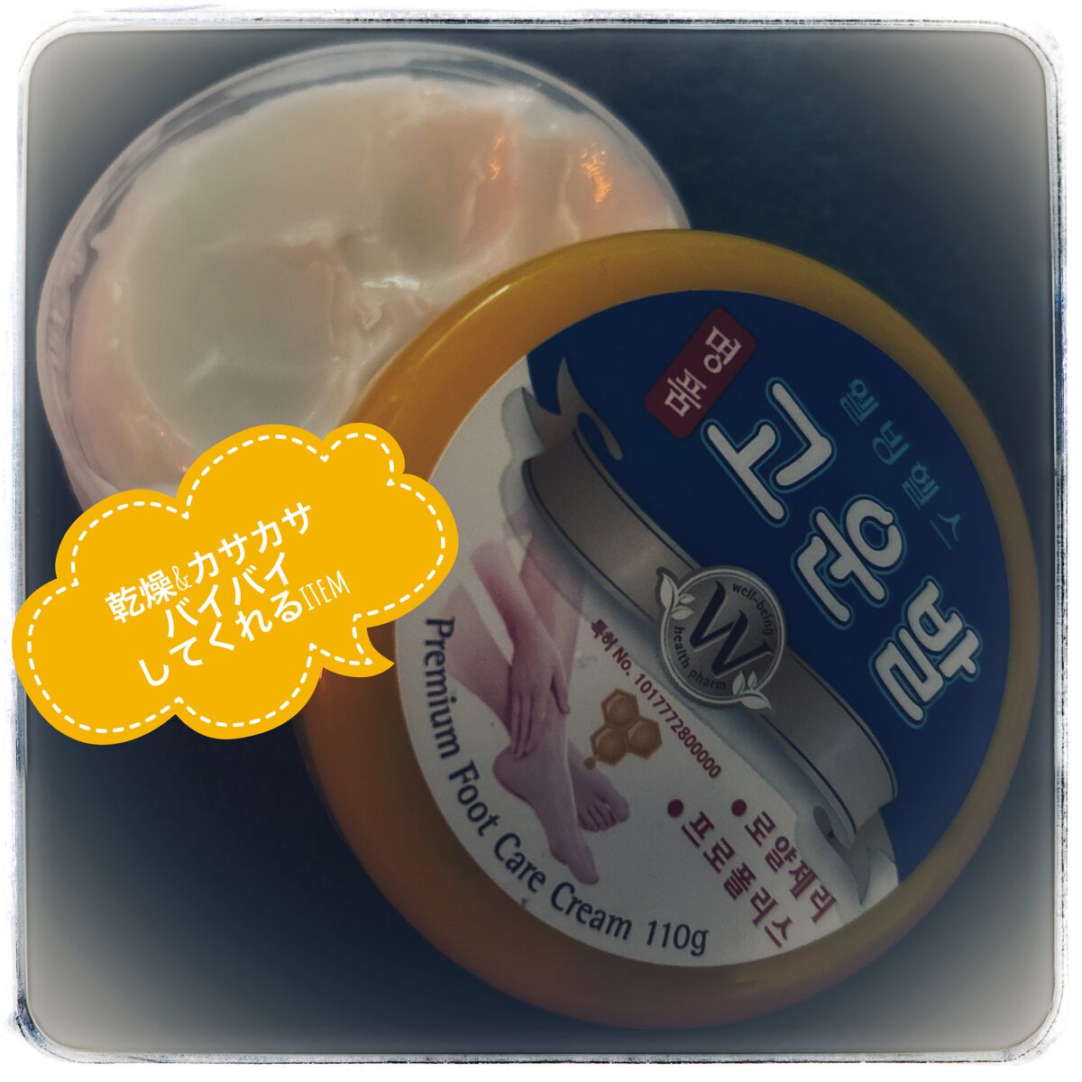 - <110g> 水、グリセリン、ミネラルオイル、トリ(カプリル酸/カプリン酸)グリセリル、セテアリルアルコール、尿素、1,2-ヘキサンジオール、ステアリン酸、ステアリン酸グリセリル、ポリソルベート60、マイクロクリスタリンワックス、スベリヒユエキス、プロポリスエキス、コメエキス、ローヤルゼリーエキス、ヒアルロン酸Na、セスキオレイン酸ソルビタン、ステアリン酸PEG-100、ジメチコン、TEA、カルボマー、メントール、BG、ブドウ種子油、カミツレエキス、スイカズラ花エキス、アセロラ果実エキス、EDTA-2Na、カンフル、シクロペンタシロキサン、シクロヘキサシロキサン、黄4、黄5