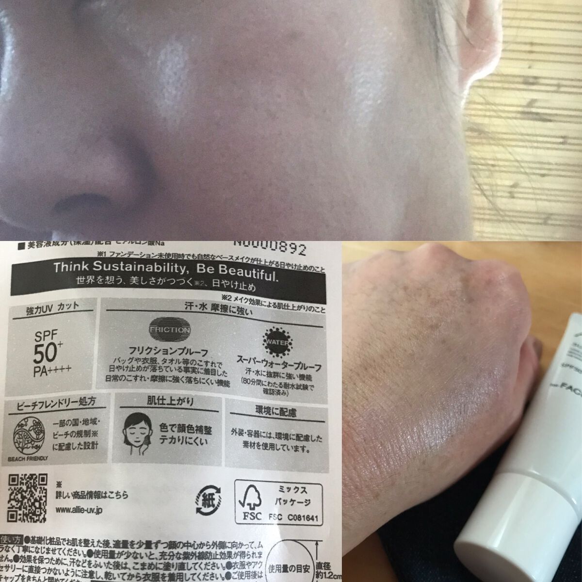 - 世界を想う 美しさつづく*1 日やけ止め おでかけも、マスクを外す機会も増える毎日に。 一部の国・地域・ビーチの規制に配慮した設計のビーチフレンドリー処方。 これ 1 本で、UV カット&顔色補整効果でクマ・くすみ・色ムラまでカバー! テカりにくく、くずれにくいノーファンデ UV*2 【ENNUI PURPLE】 くすみや毛穴をカバー 儚げな透明感のある顔印象続く 澄んだ気分を誘う 紫陽花しずく&セージの香り 【SUNNY APRICOT】 クマや毛穴をカバー いきいきとした血色感のある顔印象つづく 思わず出かけたくなる アプリコット&金木犀の香り 【SHERR BEIGE】 色ムラや毛穴をカバー 均一で抜け感のある顔印象つづく 自然で飾らない シトラスウッディ&パチュリの香り ●一部の国・地域・ビーチの規制に配慮した設計の「ビーチフレンドリー処方」 ●SPF50+・PA++++ ●汗・水 こすれに強く落ちにくい フリクションプルーフ・スーパーウォータープルーフ ●ベタつきにくい感触がつづく ●テカりにくくキレイな肌仕上がりがつづく ●環境に配慮した素材を使用したパッケージ採用 ●美容液成分(保湿)ヒアルロン酸Na配合 ●顔用 ●普段のメイククレンジングで落とせる ●マスク・タオル等につきにくい ●化粧下地効果 *1 スキンケア効果またはメイクアップ効果による肌仕上がりのこと *2 ファンデーション未使用時でも、自然なベースメイクが仕上がる日やけ止めのこと *3 チリ・ほこり・PM2.5・花粉等すべての微粒子汚れの付着を防ぐわけではありません 01:ENNUI PURPLE パープル 02:SUNNY APRICOT アプリコットピンク 03:SHEER BEIGE ミルキーベージュ