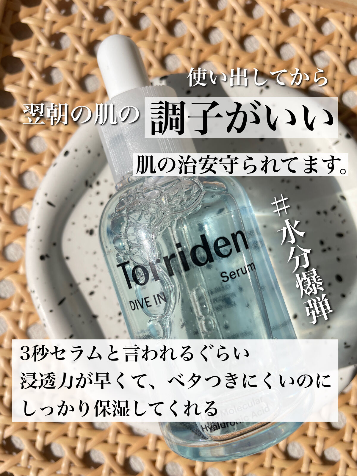 Torriden🩵ダイブインセラム50ml¥2,420大人気!トリデンのダイブインセラム。韓国スキンケアの代名詞とも言えるこのセラム。結論から言うと、私はリピなしです😅テクスチャーはとろっとしていて、付けて3秒で馴染むことから3秒セラムとも呼...