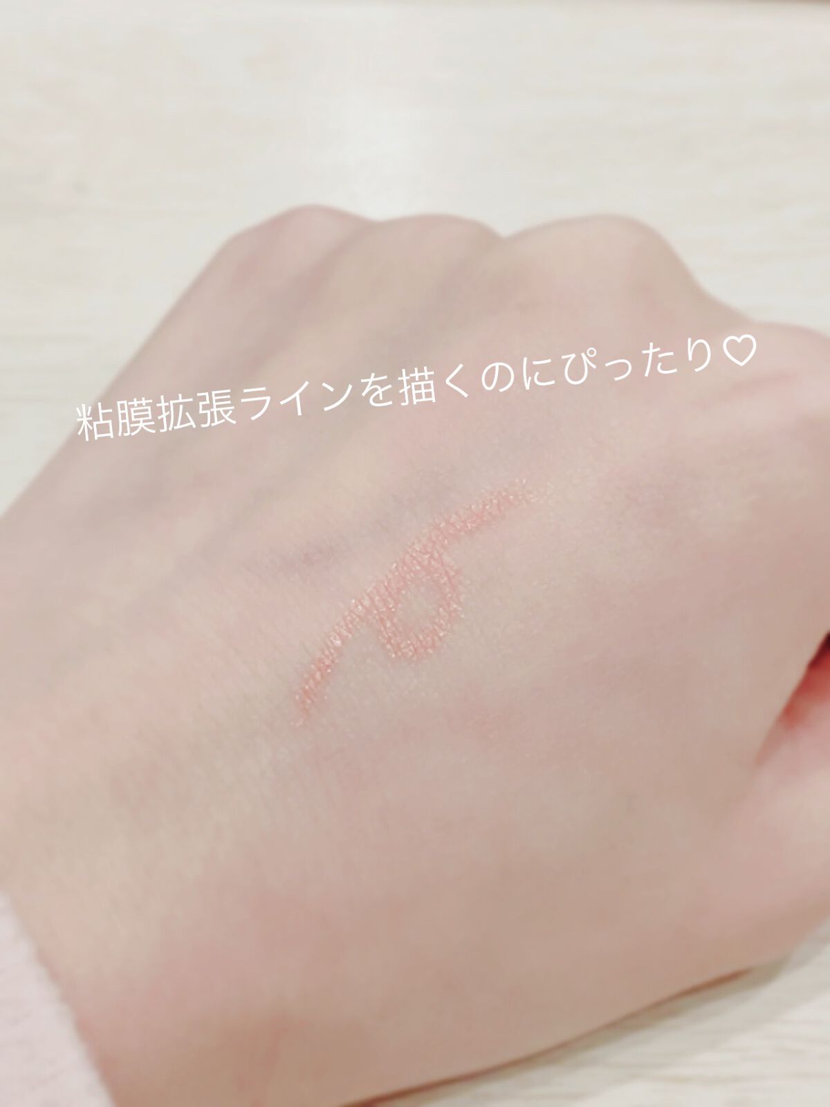 小顔かつ中顔面をきゅっと短く見せたいならぜひ取り入れてみて欲しいのが下まぶたのキワにピンクの粘膜拡張ラインを引くメイク。 このカラーはピンクの中に肌馴染みの良いブラウンが溶け込んでおり、下まつ毛まで自然に増えたような印象に仕上がります。 オイルリッチ処方で芯が柔らかく、するするなめらかな描き心地なのでデリケートなまぶたのキワにも使いやすいです。