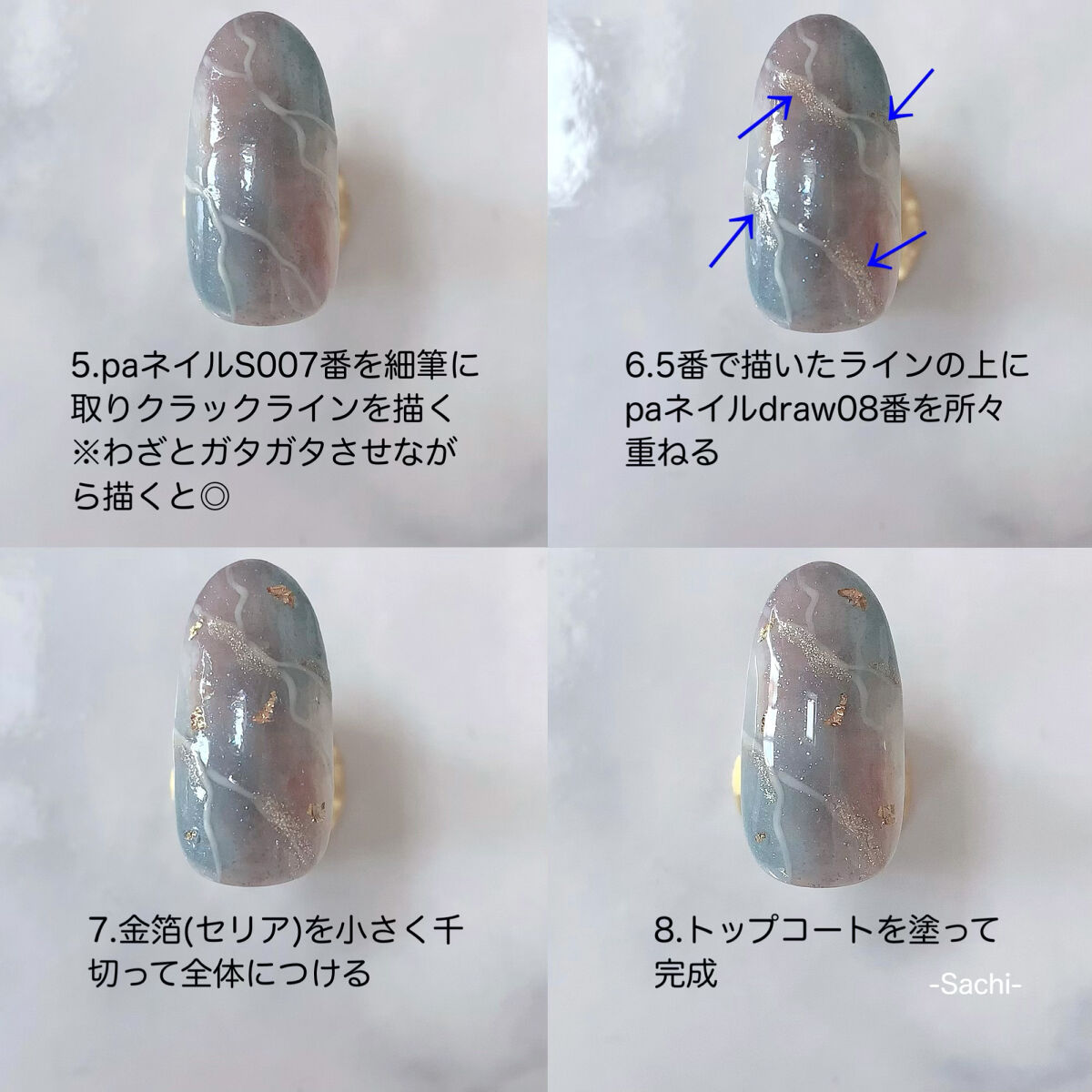 ワンカラーでも指ごとに色を変えるだけでオシャレに見えます💕 画像のようにゴールドラインとストーンを少し足すだけで華やかさがアップ🥰 何度かご紹介したことのあるスポンジで作るグラデーションです✨ スポンジを使うことで境目が綺麗に馴染んでくれます💕 アルミホイルの上でブラウンとトップコートを1:1くらいで混ぜたものを、トップコートのハケに取って3箇所に塗るだけ👌 事前に混ぜたものを塗ることで、爪の上でぼかすより簡単に出来ます💕 ベースカラーが乾く前に点置きしてぼかすことで綺麗にぼかせます✨ スピードが大事なので、使うポリッシュのキャップは全て開けておきましょう😊 天然石のラインはガタガタの方がより天然石っぽく見えるので、ラインを描くのが苦手な方でも大丈夫🙆♀️ 難しそうに見えて、やってみると意外と簡単に出来ます♡