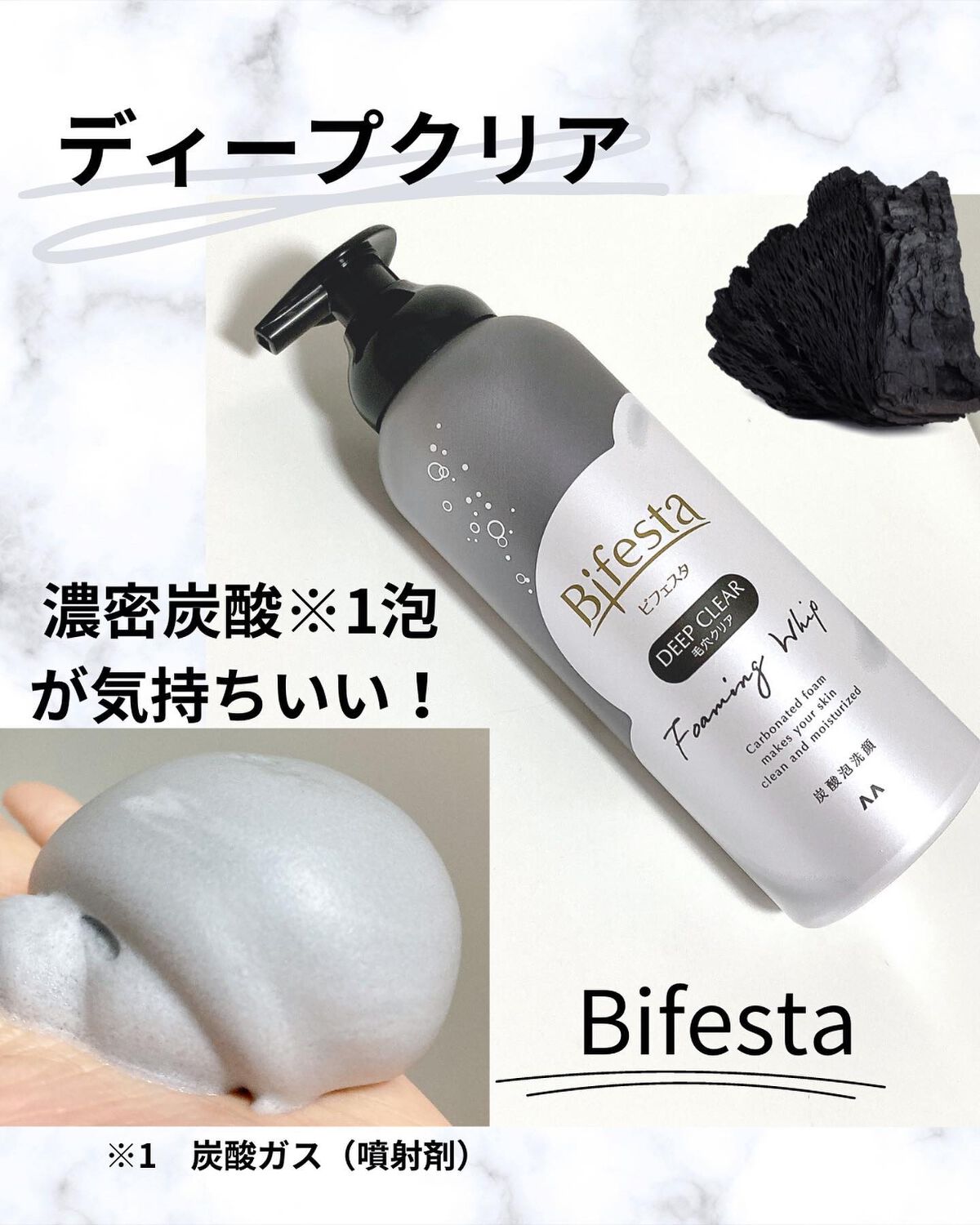 - 4,000万個※1の毛穴よりも小さいミクロの炭酸※2泡で毛穴汚れもこすらず吸着洗浄。 アミノ酸系洗浄成分配合の濃密泡で毛穴汚れをしっかり落とし、肌をいたわりながらしっとり洗い上げます。 吸着成分の炭とクレイ※3配合。 毛穴詰まりもつるんとオフしてなめらかなすべすべ肌に導きます。 ビフェスタ泡洗顔シリーズで最も洗浄力が高く、さっぱりとした洗い上がりです。 香料フリー、合成着色剤フリー、アルコールフリー(エタノール無添加)、パラベンフリー、パッチテスト済み※4。 ※1 1回あたりの使用量を目安に算出 ※2 炭酸ガス(噴射剤) ※3 ベントナイト ※4 全ての方に皮膚刺激が起こらないわけではありません。 ※2024年8月下旬よりパッケージを変更し、容量を200gに増量します。