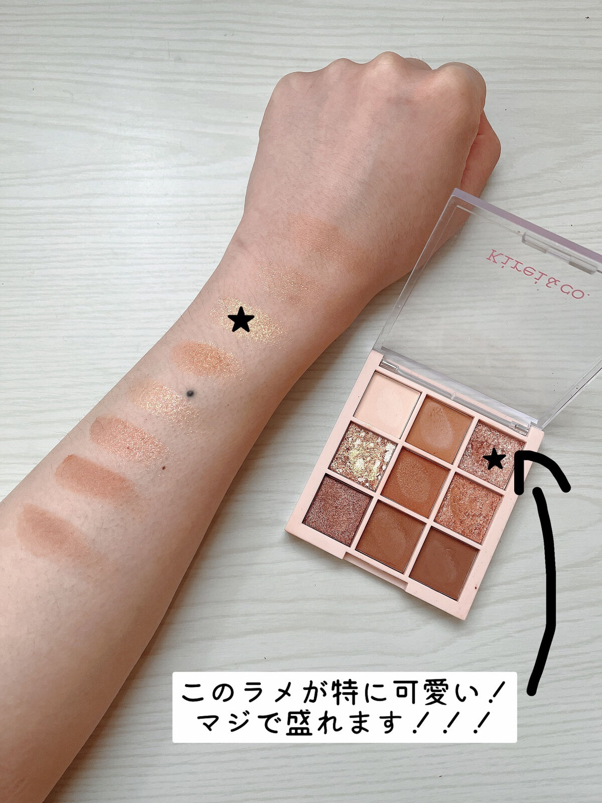 - ひとつでマット・シアーマット・パール・グリッター・ラメの多彩な質感とカラーバリエーションが楽しめる9色アイシャドウパレット。微細粒子で肌にぴったりフィットして馴染み、発色の良さが続きます。