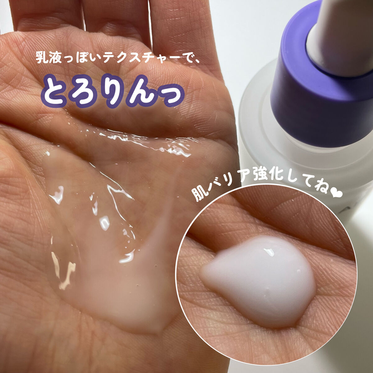 | 乳白色のトロッとしたセラム。柔らかくなめらかなセラムでお肌にのばしやすいよ😊 | 詳細を見る | |||