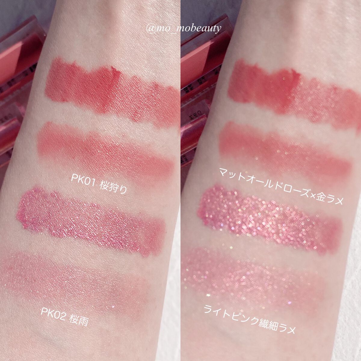 透明カラーのリップにブルー・ピンク・シルバーのラメがたっぷり入っていて眩い輝きが偏光ラメ好きにはたまらない🤤💕 ピリピリ感もほどよくあってぷっくり唇になれる💗 お気に入りリップに重ねると一気に今どきのぷりぷりリップになれてこれからの季節めちゃくちゃ重宝します🌸