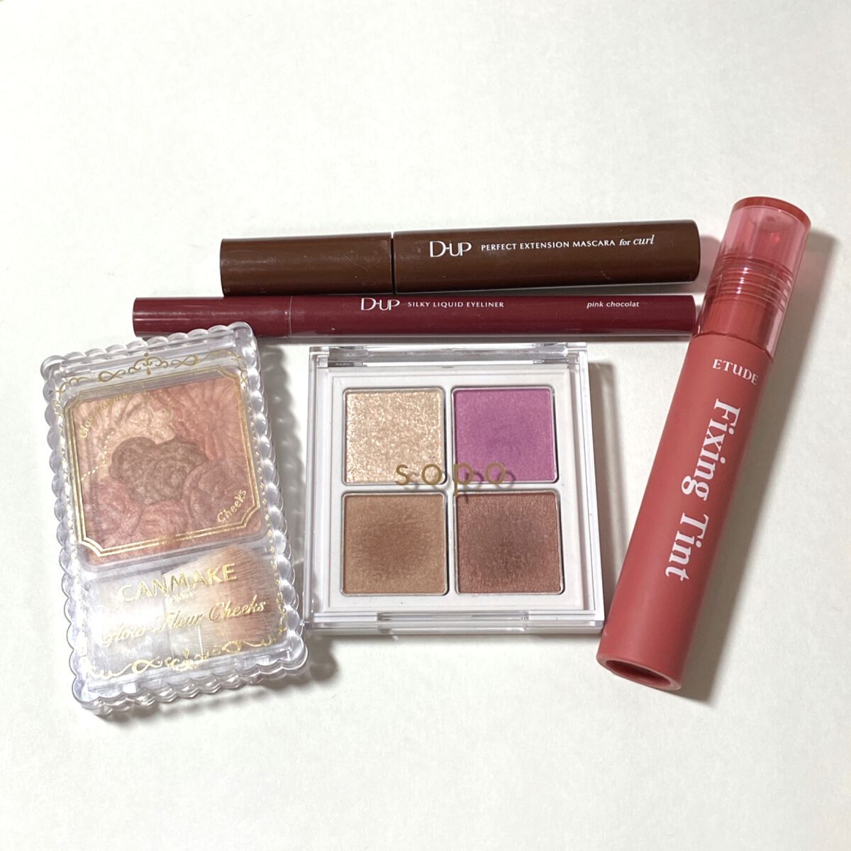 こんばんは✩.#今日のメイク.#アンドビー#アンドビーパレットアイシャドウ#ロゼブラウン.#sopo#カラーマスカラ10チョコレートブラウン.#キャンメイク#クリームチーク#ペールライラック.#ディーアップ#シルキーリキッドアイライナーWP#...