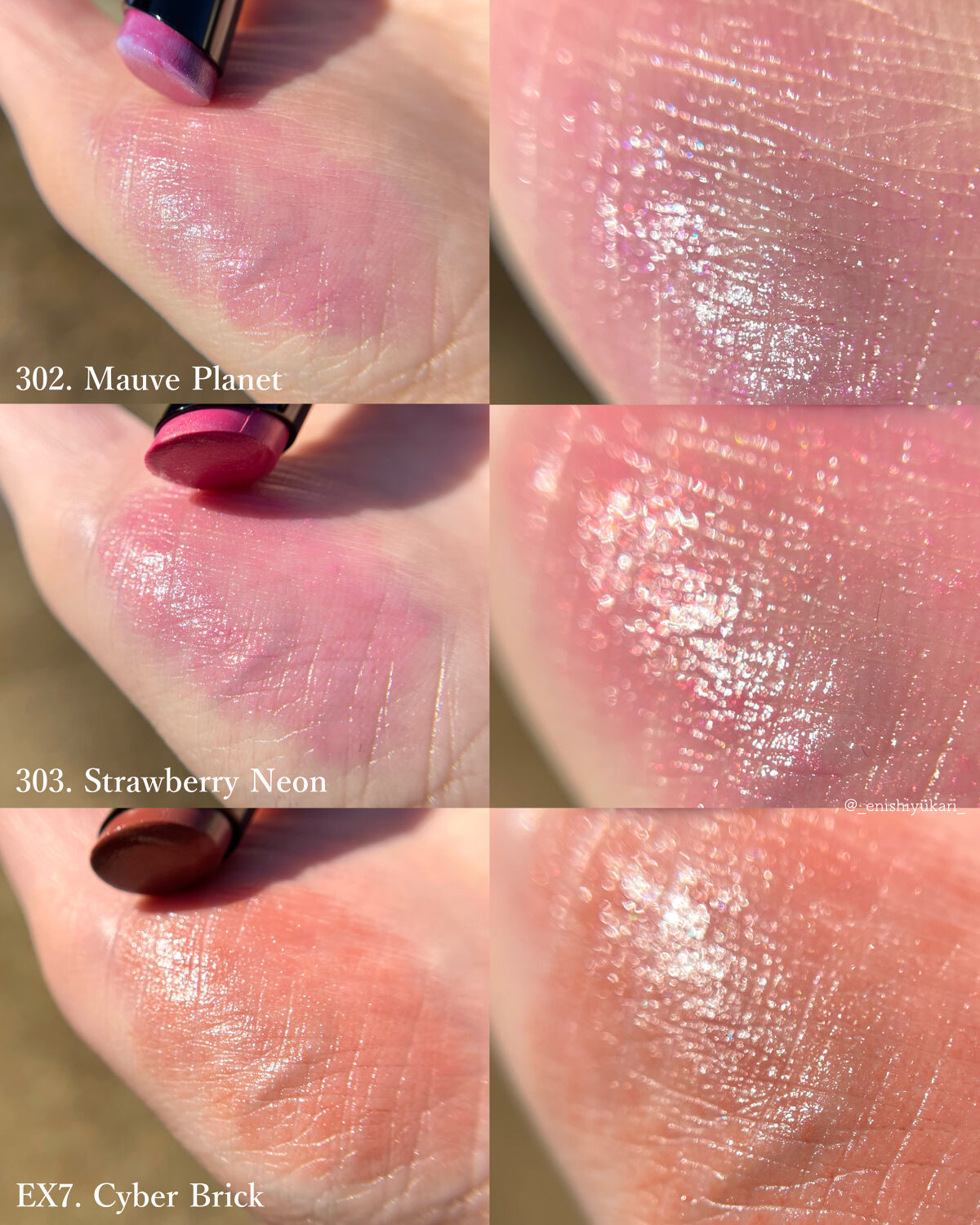 - <111 Eden Pink> 水添ポリイソブテン、デカイソステアリン酸ポリグリセリル-10、トリメチルペンタフェニルトリシロキサン、ラウロイルグルタミン酸ジ(オクチルドデシル/フィトステリル/ベヘニル)、トリ(カプリル酸/カプリン酸)グリセリル、ダイマージリノール酸(フィトステリル/イソステアリル/セチル/ステアリル/ベヘニル)、イソノナン酸イソトリデシル、ラウロイルグルタミン酸ジ(フィトステリル/オクチルドデシル)、パラフィン、合成ワックス、オクチルドデカノール、マイクロクリスタリンワックス、ジイソステアリン酸ポリグリセリル-2、水添マイクロクリスタリンワックス、ヒドロキシステアリン酸エチルヘキシル、トコフェロール、トリポリヒドロキシステアリン酸ジペンタエリスリチル、マカデミア種子油、マカデミアナッツ脂肪酸フィトステリル、アンズ核油、カニナバラ果実油、アンズ果汁、DPG、(エチレン/プロピレン)コポリマー、ポリエチレン、ジメチコン、エチルグルコシド、グリセリン、ダイズ油、ニンジン根エキス、(+/-)マイカ、ラウロイルアスパラギン酸Na、ラウロイルリシン、塩化亜鉛、酸化チタン、酸化鉄、水酸化Al、硫酸Ba、トリイソステアリン酸イソプロピルチタン、酸化スズ、ホウケイ酸(Ca/Al)、合成フルオロフロゴパイト、黄4、黄5、赤104(1)、赤201、赤202 <112 Old Rose> 水添ポリイソブテン、デカイソステアリン酸ポリグリセリル-10、トリメチルペンタフェニルトリシロキサン、ラウロイルグルタミン酸ジ(オクチルドデシル/フィトステリル/ベヘニル)、トリ(カプリル酸/カプリン酸)グリセリル、ダイマージリノール酸(フィトステリル/イソステアリル/セチル/ステアリル/ベヘニル)、イソノナン酸イソトリデシル、ラウロイルグルタミン酸ジ(フィトステリル/オクチルドデシル)、パラフィン、合成ワックス、オクチルドデカノール、マイクロクリスタリンワックス、ジイソステアリン酸ポリグリセリル-2、水添マイクロクリスタリンワックス、ヒドロキシステアリン酸エチルヘキシル、トコフェロール、トリポリヒドロキシステアリン酸ジペンタエリスリチル、マカデミア種子油、マカデミアナッツ脂肪酸フィトステリル、アンズ核油、カニナバラ果実油、アンズ果汁、DPG、(エチレン/プロピレン)コポリマー、ポリエチレン、ジメチコン、エチルグルコシド、グリセリン、ダイズ油、ニンジン根エキス、(+/-)マイカ、ラウロイルアスパラギン酸Na、ラウロイルリシン、塩化亜鉛、酸化チタン、酸化鉄、水酸化Al、硫酸Ba、トリイソステアリン酸イソプロピルチタン、酸化スズ、ホウケイ酸(Ca/Al)、合成フルオロフロゴパイト、黄4、黄5、赤104(1)、赤201、赤202 <114 Mystical Orchid> 水添ポリイソブテン、デカイソステアリン酸ポリグリセリル-10、トリメチルペンタフェニルトリシロキサン、ラウロイルグルタミン酸ジ(オクチルドデシル/フィトステリル/ベヘニル)、トリ(カプリル酸/カプリン酸)グリセリル、ダイマージリノール酸(フィトステリル/イソステアリル/セチル/ステアリル/ベヘニル)、イソノナン酸イソトリデシル、ラウロイルグルタミン酸ジ(フィトステリル/オクチルドデシル)、パラフィン、合成ワックス、オクチルドデカノール、マイクロクリスタリンワックス、ジイソステアリン酸ポリグリセリル-2、水添マイクロクリスタリンワックス、ヒドロキシステアリン酸エチルヘキシル、トコフェロール、トリポリヒドロキシステアリン酸ジペンタエリスリチル、マカデミア種子油、マカデミアナッツ脂肪酸フィトステリル、アンズ核油、カニナバラ果実油、アンズ果汁、DPG、(エチレン/プロピレン)コポリマー、ポリエチレン、ジメチコン、エチルグルコシド、グリセリン、ダイズ油、ニンジン根エキス、(+/-)マイカ、ラウロイルアスパラギン酸Na、ラウロイルリシン、塩化亜鉛、酸化チタン、酸化鉄、水酸化Al、硫酸Ba、トリイソステアリン酸イソプロピルチタン、酸化スズ、ホウケイ酸(Ca/Al)、合成フルオロフロゴパイト、黄4、黄5、赤104(1)、赤201、赤202 <152 Chestnut Red> 水添ポリイソブテン、デカイソステアリン酸ポリグリセリル-10、トリメチルペンタフェニルトリシロキサン、ラウロイルグルタミン酸ジ(オクチルドデシル/フィトステリル/ベヘニル)、トリ(カプリル酸/カプリン酸)グリセリル、ダイマージリノール酸(フィトステリル/イソステアリル/セチル/ステアリル/ベヘニル)、イソノナン酸イソトリデシル、ラウロイルグルタミン酸ジ(フィトステリル/オクチルドデシル)、パラフィン、合成ワックス、オクチルドデカノール、マイクロクリスタリンワックス、ジイソステアリン酸ポリグリセリル-2、水添マイクロクリスタリンワックス、ヒドロキシステアリン酸エチルヘキシル、トコフェロール、トリポリヒドロキシステアリン酸ジペンタエリスリチル、マカデミア種子油、マカデミアナッツ脂肪酸フィトステリル、アンズ核油、カニナバラ果実油、アンズ果汁、DPG、(エチレン/プロピレン)コポリマー、ポリエチレ