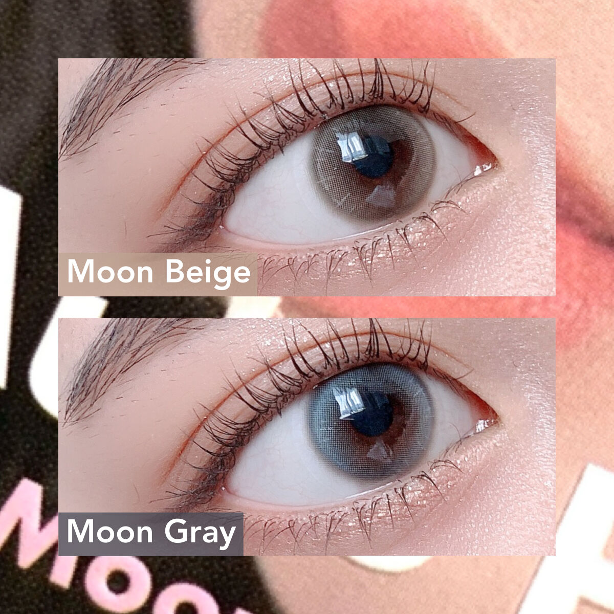 夕暮れの後、あたたかな月の光が差し込んだ瞳🌖#ムーンベージュ グレーみもあるカラーでキラキラしたグラフィックがちゅるんとした瞳を演出。 深い夜、水面にゆらめく月の光を映す瞳🌔#ムーングレー 韓国カラコン特有の青みのあるグレー。結構青み強めだからブルーカラコンを探してる人にもおすすめしたい!