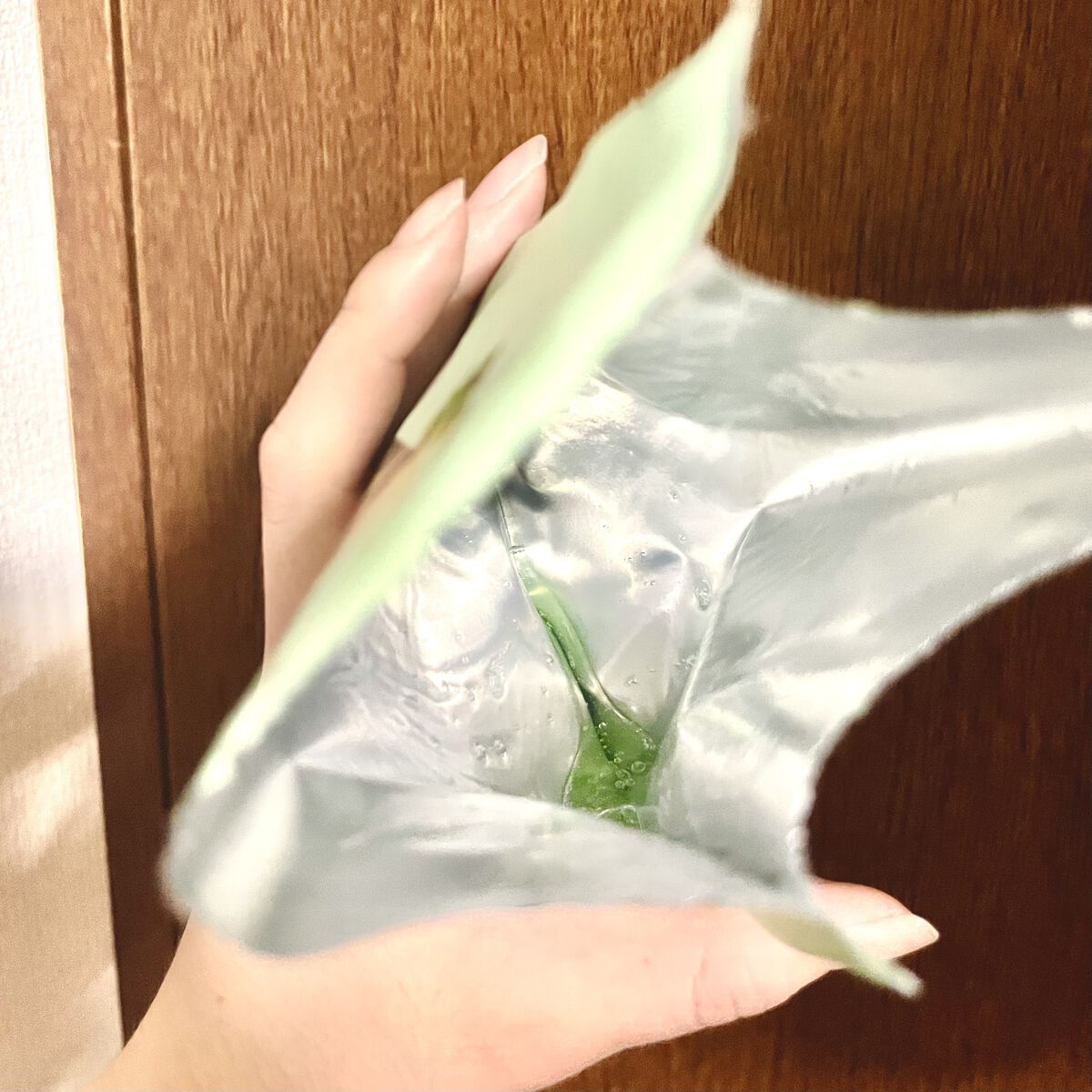 液はしっかり入っていていました◎ 私は今まで、パックの液体にとろみがついていたものが多かったのですが、今回使ったものはとろみはなく、化粧水って感じのテクスチャでした! パックの質感は、少し硬めでざらざらしています。 20分ほどおきましたが、特にヒリヒリするとかはなかったです。お肌がひんやり気持ちよかったです◎ 匂いは少し薬草?みたいな匂いがするので、もしかしたら気になる方もいるかも知れません。 冬場はその後に保湿をしっかりしたほうがいいですが、 夏に使いたいなと思いました🌱
