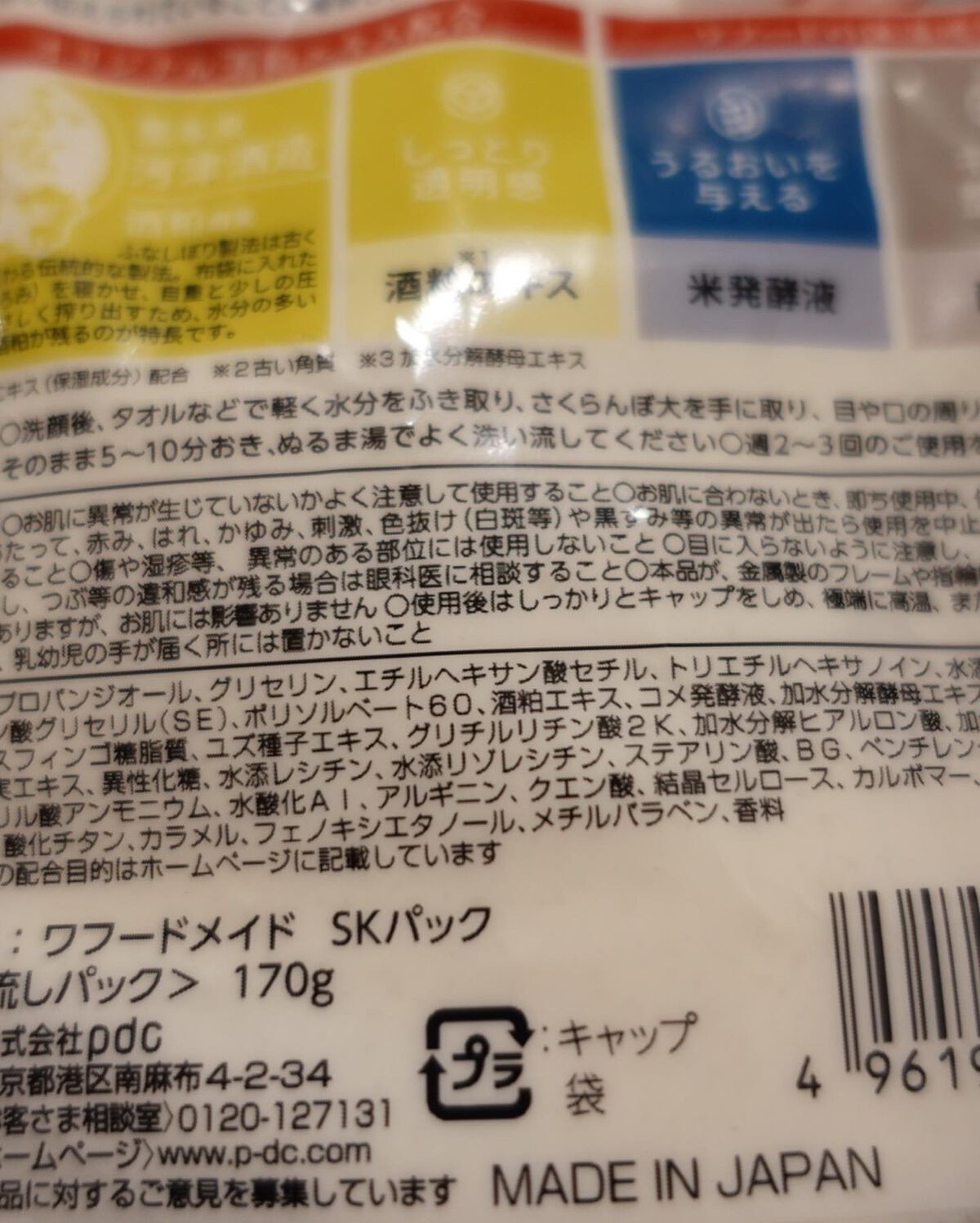 pdc ワフードメイド 酒粕パック グロー | 1,320円 |