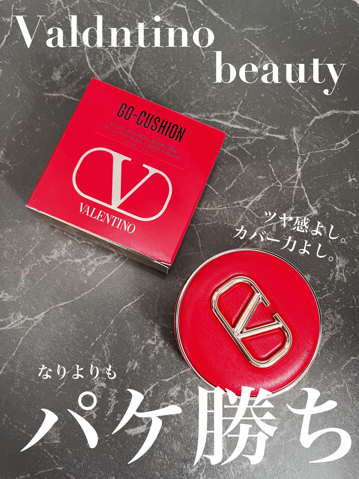 ヴァレンティノGOクッションSPF50+PA+++ パケの高級感とパケの可愛さ♥️持ち歩き決定ですね✨ みずみずしく、のびもいいので使いやすかったです😊カラーは少し明るめでした❗ 他のカラーを試したいです😉 さすがにマスクではよれるので、トナーパッドなどで少しオフして、ポンポンの簡単なお直しにもむいています😃