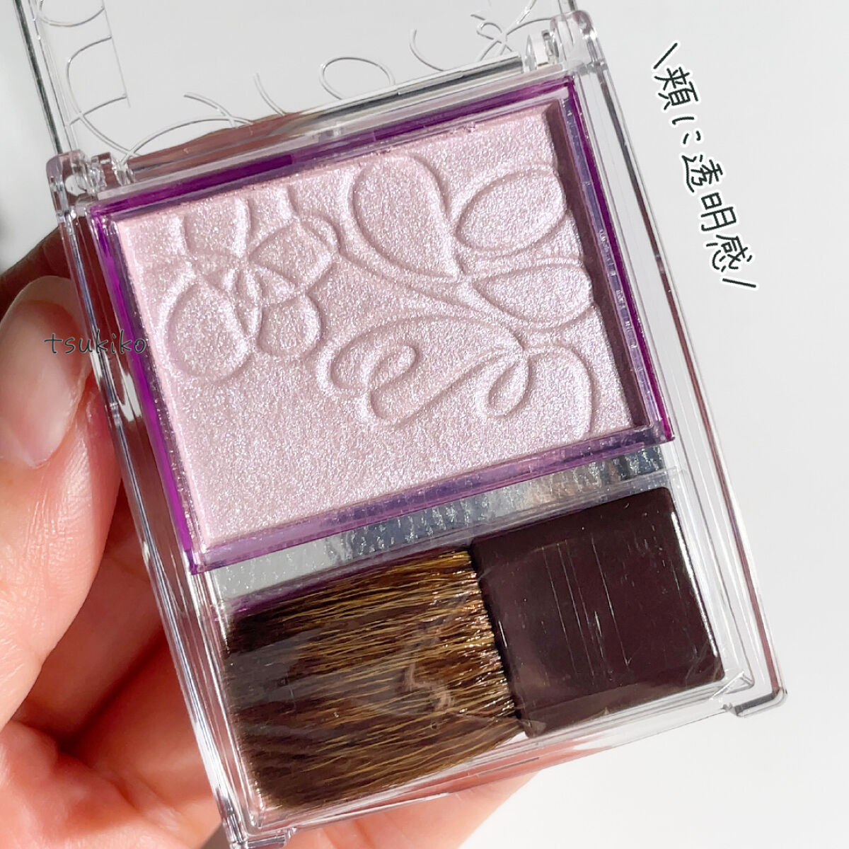 透明感あふれるライラックカラーの輝きをふんわり足してくれるニュアンサー✨ 色味も輝きも強すぎないのでどんなチークとも合わせやすいと思います スウォッチは付属のブラシで塗りました 動画は照明の当たる所で撮影しました