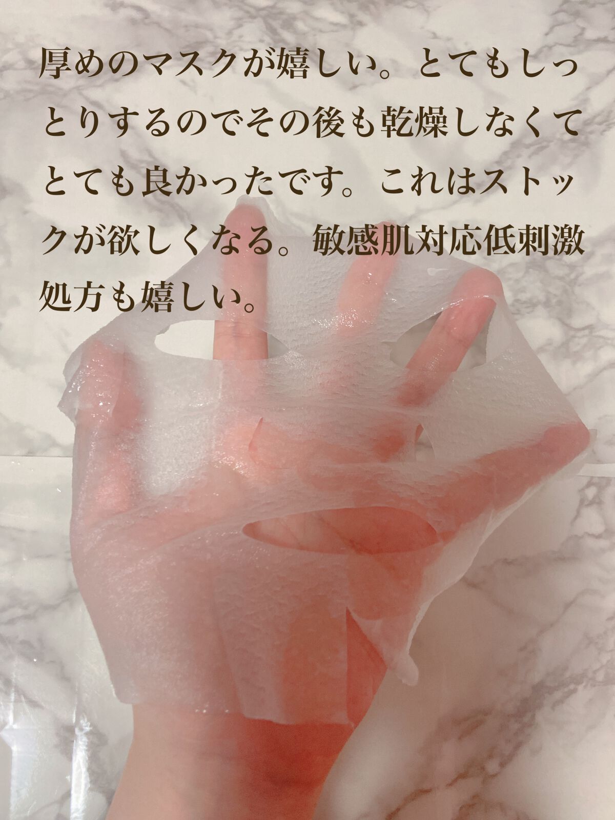 | 保湿に特化しているので乾燥肌さんにおすすめ。でこぼこのシートマスクの質感もピタッと密着してくれて感動。 | 詳細を見る |