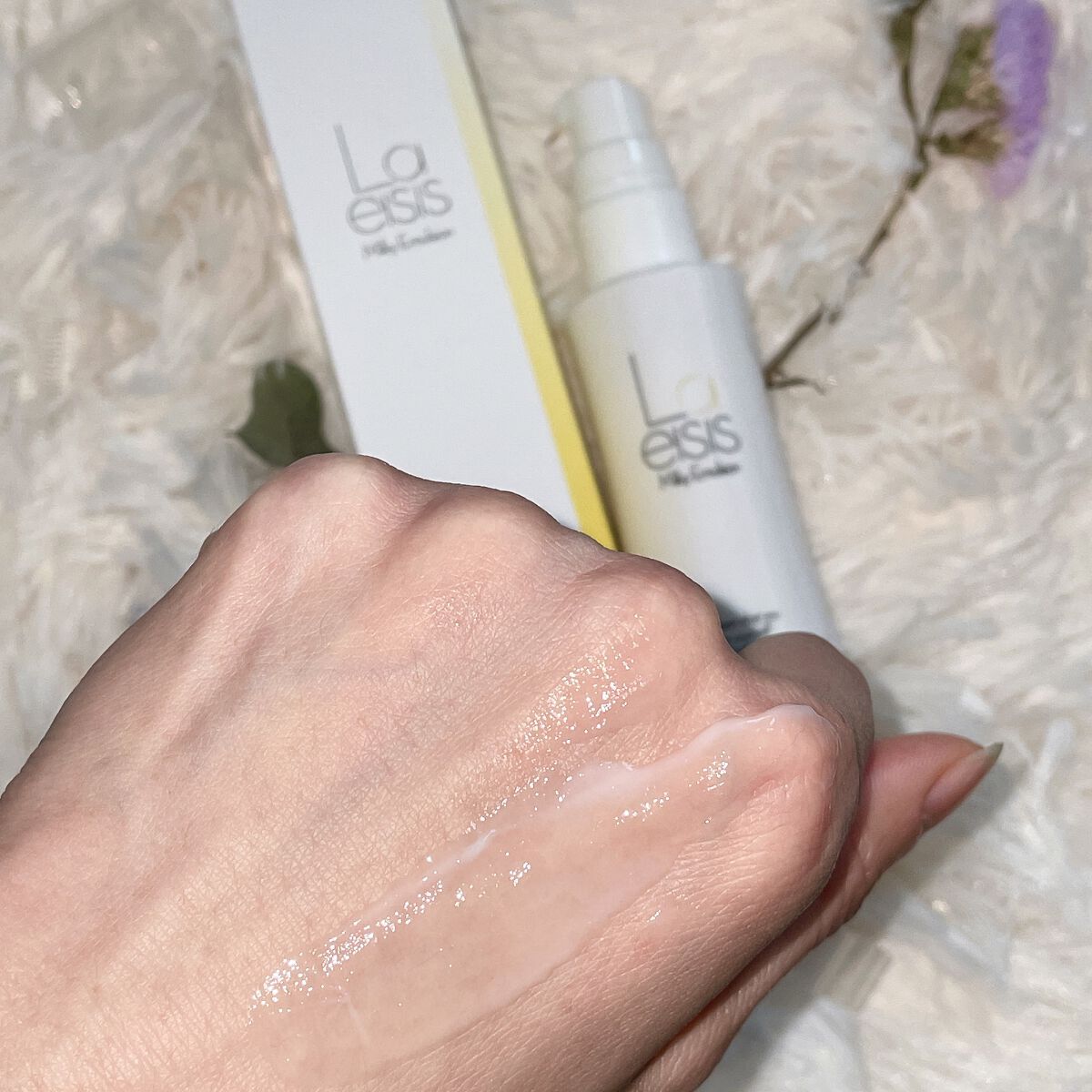 使用目安2、3プッシュとありますがピンポイントで特にケアしたい部分(例えば、鼻・小鼻・上瞼や下瞼周辺・頬付近三角ゾーン・顎・おでこにちょんちょん)全てにそれぞれ丁寧に塗り込むには、のびがいいので1プッシュでも充分に足りるくらい。 最初押し出した時は形が崩れないぷるんとした柔らかめのジェリー状のような雰囲気。 指で伸ばすと とぅるんとなめらかにのびて、馴染ませると手と肌がぴたっと吸い付くような潤い感。 香りが強くないのに、さり気ない爽やかな清潔感のある香りがほんのりするところもすごく好みです。