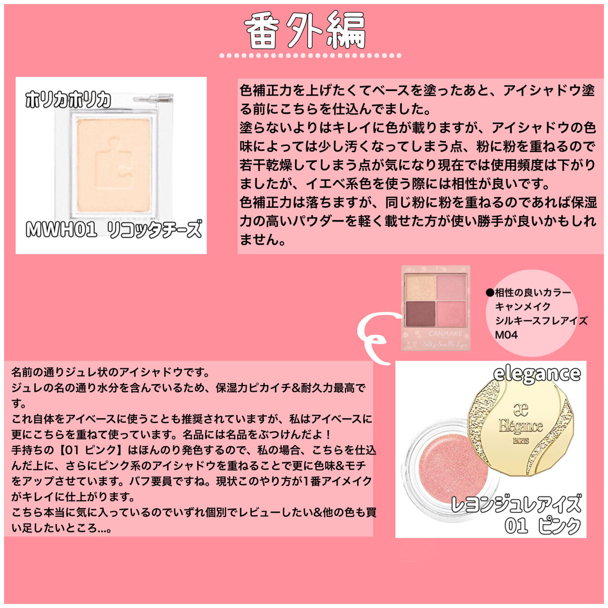 | まぶたに塗ると、サラサラとパウダーのような質感に!密着してモチもよくなる♪ | 詳細を見る | |