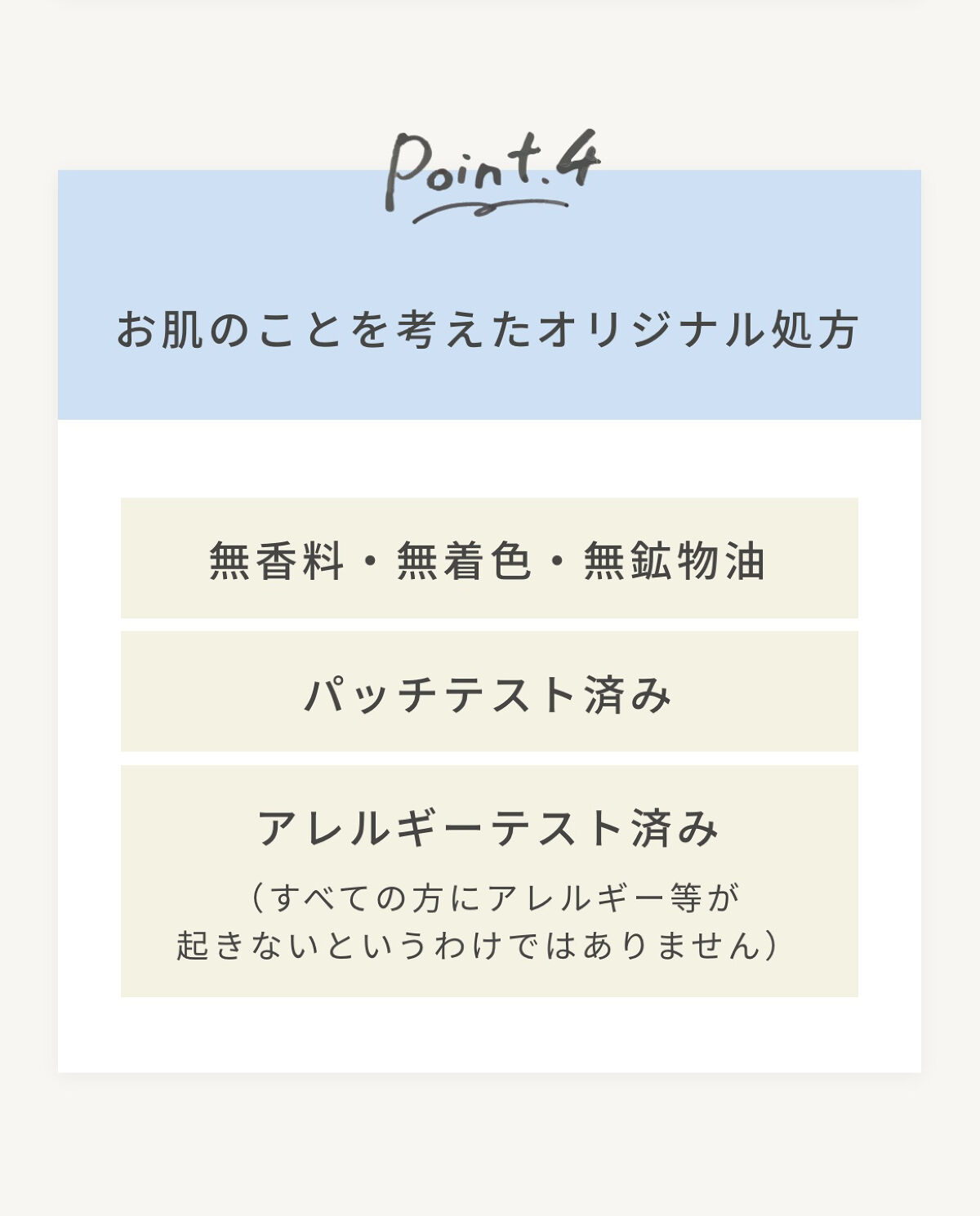 - <100ml> 水、ベヘニルアルコール、BG、グリセリン、ジグリセリン、フェノキシエタノール、メチルパラベン、エタノール、グリチルリチン酸2K、セラミドNG、ダイズ種子エキス、シクロデキストリン、ステアリン酸グリセリル(SE)、海水、トコフェリルリン酸Na、豆乳発酵液、アルカリゲネス産生多糖体、結晶セルロース、水酸化レシチン、ダイズタンパク、イソステアリン酸フィトステリル、豆乳イソフラボン、ポリグリセリン-3