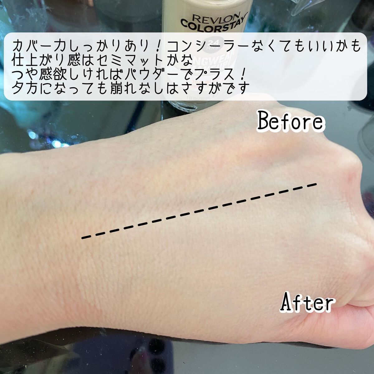 - くすみにくい*1! さらに、スキンケア効果をプラス! 24時間*2落ちない リキッドファンデ【普通肌・混合肌用】 ・ 独自の「アダプティフレックス処方」で、しなやかに肌にフィット。 肌の動きと一体化するから、1日中落ちにくく、ストレスフリーなつけ心地! ・ さらに、つけたての色&仕上がりが、そのままつづく。 ・ 皮膚コンディショニング成分、ビタミンE*3高配合*4で、なめらかな肌に。 ・ オイルフリー処方 ・ 皮脂のバランスを整え、テカりを抑える。 ・ 肌本来の美しさを活かす、セミマット肌に。 ・ SPF15 PA++ 同じ色番号でも、従来品と若干色味が異なりますので、是非お手に取ってお試しください。 *1 メイクアップ効果による *2 レブロン研究所調べ(個人差が出る場合があります。) *3 酢酸トコフェロール *4 従来品との比較において