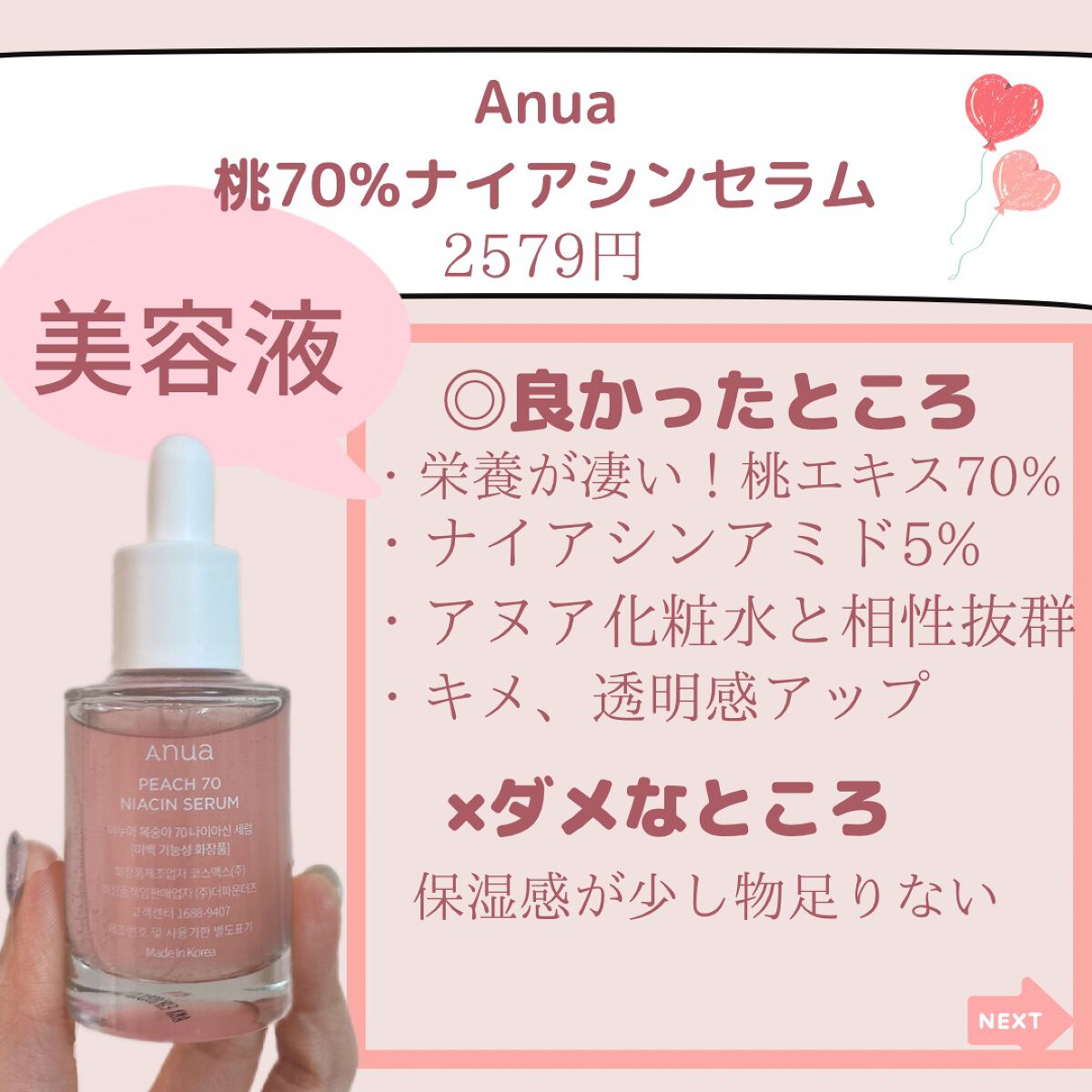 Anua 桃70%ナイアシンセラム | 2,579円 |