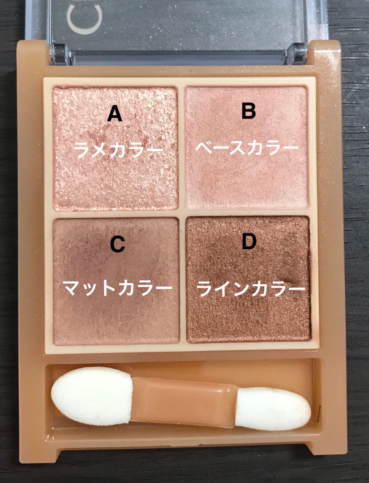 - ラメ・パール・マット3質感の4色アイシャドウ。 肌馴染みの良いベージュを基調としたカラー。ラメ・パール・マットの3質感を重ねて、自然にまぶたを強調し奥行のある大きな目元へ。 しっとり溶け込むような柔らかなパウダーなので、スルスル伸びてまぶたにピタッと密着。保湿成分(スクワラン・ホホバ種子油)配合。