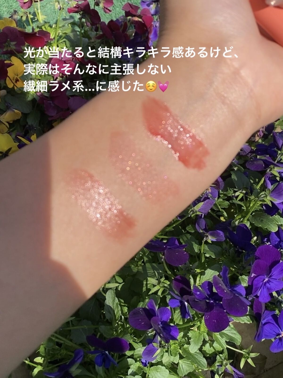 桜色のひと時なんて、ほんっっと手に入らない!!って事で話題になってたよね😭 ばぶみたっぷり、話題のうさぎ舌カラー🐰🩵 グリーンパールを纏ってるから、深みも出て学生さん〜大人までみんなが付けやすいピンク💋 柔らかさに、深みもIN…✨ イエベもブルベも使いやすいピンク、絶対チェックしてほしい…😭!!!! 真夜中の褒美は、深い赤みブラウン+グリーンパールで、妖艶な色気唇を演出🪄 ただの赤ではなく、ブラウンが混ざり合う事で大人の赤って感じの発色✨ 濃いメイクにベタ塗りするのが個人的に1番のお気に入り…💋(フチはぼかしてね🙆♀️) ティッシュオフして軽めに使うのも可愛いけどけ🥰 オフしても、ラメはきらんきらん残る🤭 (これだけラメがしっかり付くのすごい💐) 2位の秘めた炎はミルクティーを注いだような上品ミルクティーブラウン🪄 このカラーも大人っぽくて、普段使いしやすそう🥺