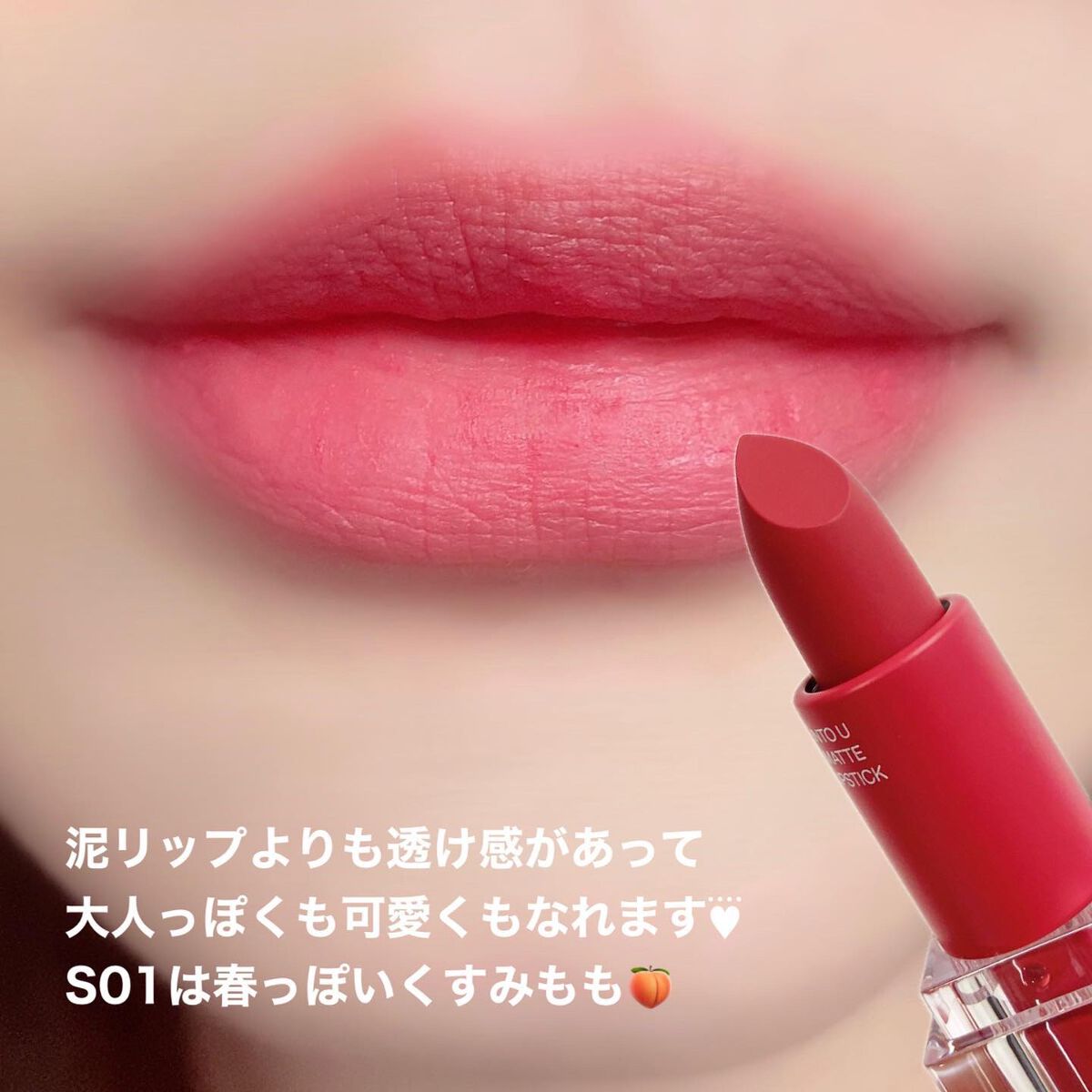 | ふんわり柔らかなつけ心地のもちもちリップ。しっとりした仕上がりなので、マット使ったことない人も試しやすいと思う◎ | 詳細を見る |