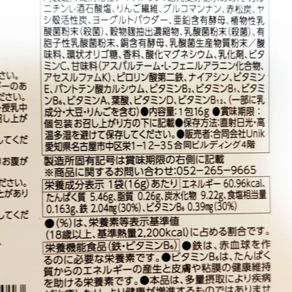 - 炭2種・トリプル食物繊維・ビタミンミネラル15種類・乳酸菌5種類・ソイプロテイン