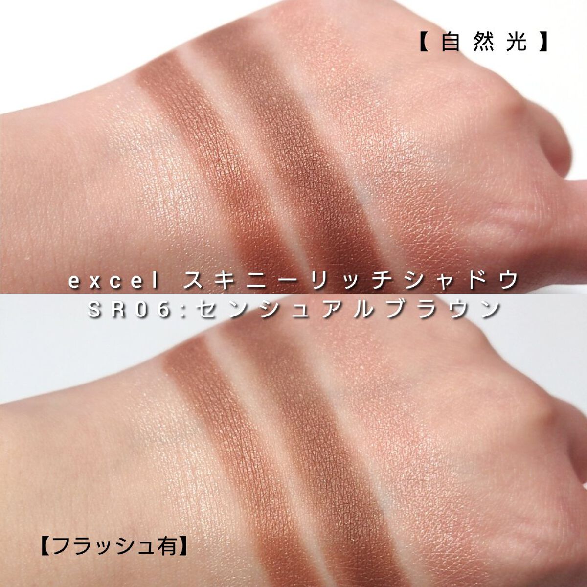 excelスキニーリッチシャドウSR06センシュアルブラウン📷3枚目にスウォッチあり⋱⋰⋱⋰⋱⋰⋱⋰⋱⋰⋱⋰⋱⋰⋱⋰⋱⋰⋱⋰手持ちのアイシャドウはほとんどピンク系なのですが、たまーにブラウンのシャドウを使うとなるとexcelのスキニーリッチシ...