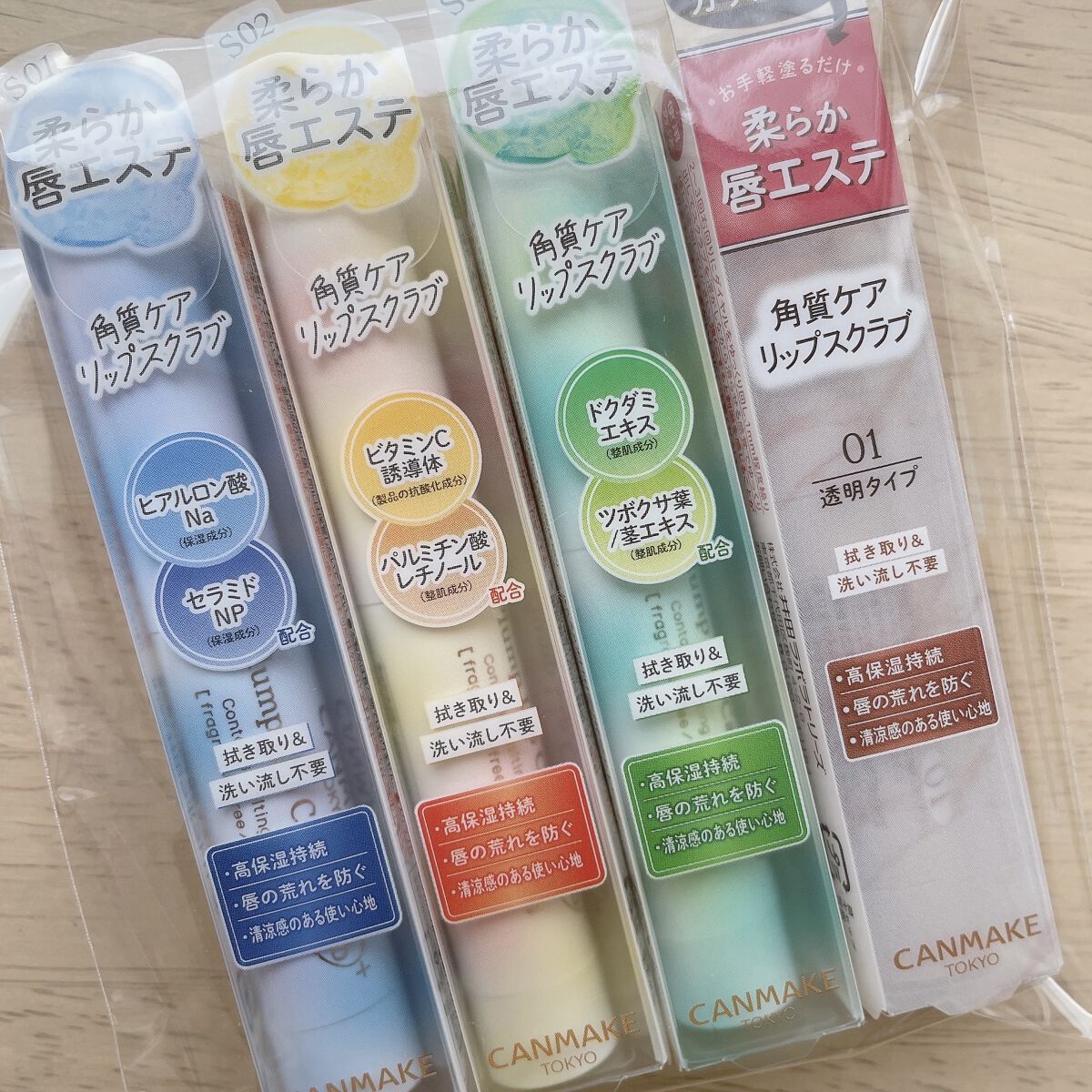 - <01 クリア> 水添ポリイソブテン、ワセリン、オリーブ果実油、ジエチルヘキサン酸ネオペンチルグリコール、スクロース、ポリエチレン、リンゴ酸ジイソステアリル、ジフェニルシロキシフェニルトリメチコン、ジメチルシリル化シリカ、キャンデリラロウ炭化水素、水添ヒマシ油、セスキイソステアリン酸ソルビタン、メントキシプロパンジオール、BG、水、ソメイヨシノ葉エキス、カミツレ花エキス <02 クリアピンク> 水添ポリイソブテン、ワセリン、オリーブ果実油、ジエチルヘキサン酸ネオペンチルグリコール、スクロース、ポリエチレン、リンゴ酸ジイソステアリル、ジフェニルシロキシフェニルトリメチコン、ジメチルシリル化シリカ、キャンデリラロウ炭化水素、水添ヒマシ油、セスキイソステアリン酸ソルビタン、メントキシプロパンジオール、トコフェロール、水酸化Al、BG、水、ソメイヨシノ葉エキス、カミツレ花エキス、酸化チタン、黄4、赤202、酸化鉄 <03 みかんイエロー> 水添ポリイソブテン、ワセリン、オリーブ果実油、ジエチルヘキサン酸ネオペンチルグリコール、スクロース、ポリエチレン、リンゴ酸ジイソステアリル、ジフェニルシロキシフェニルトリメチコン、ジメチルシリル化シリカ、キャンデリラロウ炭化水素、水添ヒマシ油、セスキイソステアリン酸ソルビタン、メントキシプロパンジオール、トコフェロール、BG、水、ソメイヨシノ葉エキス、カミツレ花エキス、黄4、赤202、酸化鉄