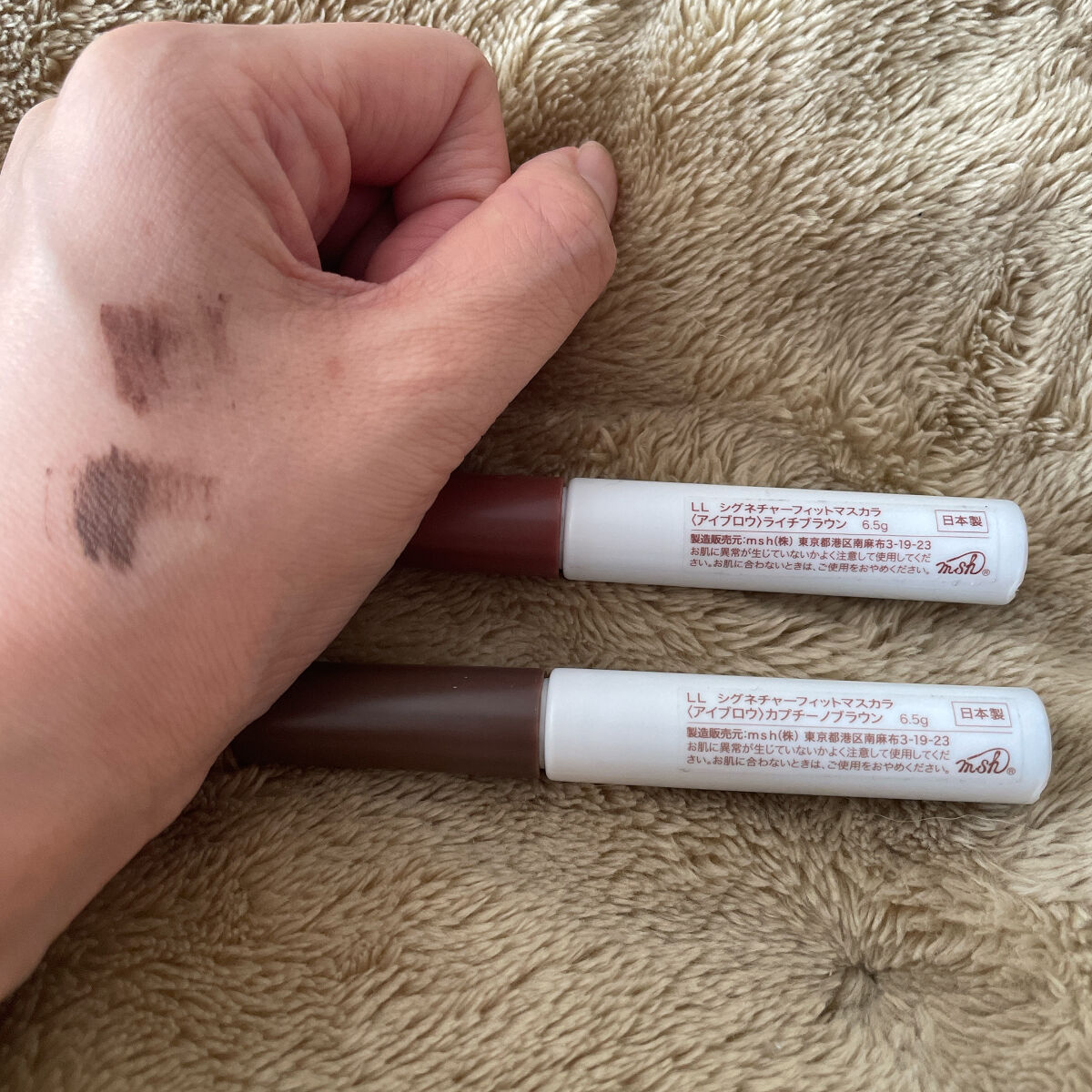 - <カプチーノブラウン> 水、アクリレーツコポリマー、BG、DPG、オクチルドデカノール、シリカ、エタノール、ジエチルヘキサン酸ネオペンチルグリコール、1,2-ヘキサンジオール、ペンチレングリコール、パンテノール、アルガニアスピノサ核油、トコフェロール、グリセリン、(HDI/トリメチロールヘキシルラクトン)クロスポリマー、メタクリル酸メチルクロスポリマー、(ベヘン酸/エイコサン二酸)ポリグリセリル-10、ケイ酸(Al/Mg)、セテス-20、メチルパラベン、PEG-40水添ヒマシ油、セルロースガム、ヒドロキシエチルセルロース、フェノキシエタノール、エチルヘキシルグリセリン、(+/-)タルク、酸化チタン、マイカ、酸化鉄、アルミナ <ヘーゼルブラウン> 水、アクリレーツコポリマー、BG、DPG、オクチルドデカノール、シリカ、エタノール、ジエチルヘキサン酸ネオペンチルグリコール、1,2-ヘキサンジオール、ペンチレングリコール、パンテノール、アルガニアスピノサ核油、トコフェロール、グリセリン、(HDI/トリメチロールヘキシルラクトン)クロスポリマー、メタクリル酸メチルクロスポリマー、(ベヘン酸/エイコサン二酸)ポリグリセリル-10、ケイ酸(Al/Mg)、セテス-20、メチルパラベン、PEG-40水添ヒマシ油、セルロースガム、ヒドロキシエチルセルロース、フェノキシエタノール、エチルヘキシルグリセリン、(+/-)タルク、酸化チタン、マイカ、酸化鉄、アルミナ <ライチブラウン> 水、アクリレーツコポリマー、BG、DPG、オクチルドデカノール、シリカ、エタノール、ジエチルヘキサン酸ネオペンチルグリコール、1,2-ヘキサンジオール、ペンチレングリコール、パンテノール、アルガニアスピノサ核油、トコフェロール、グリセリン、(HDI/トリメチロールヘキシルラクトン)クロスポリマー、メタクリル酸メチルクロスポリマー、(ベヘン酸/エイコサン二酸)ポリグリセリル-10、ケイ酸(Al/Mg)、セテス-20、メチルパラベン、PEG-40水添ヒマシ油、セルロースガム、ヒドロキシエチルセルロース、フェノキシエタノール、エチルヘキシルグリセリン、(+/-)タルク、酸化チタン、マイカ、酸化鉄、アルミナ