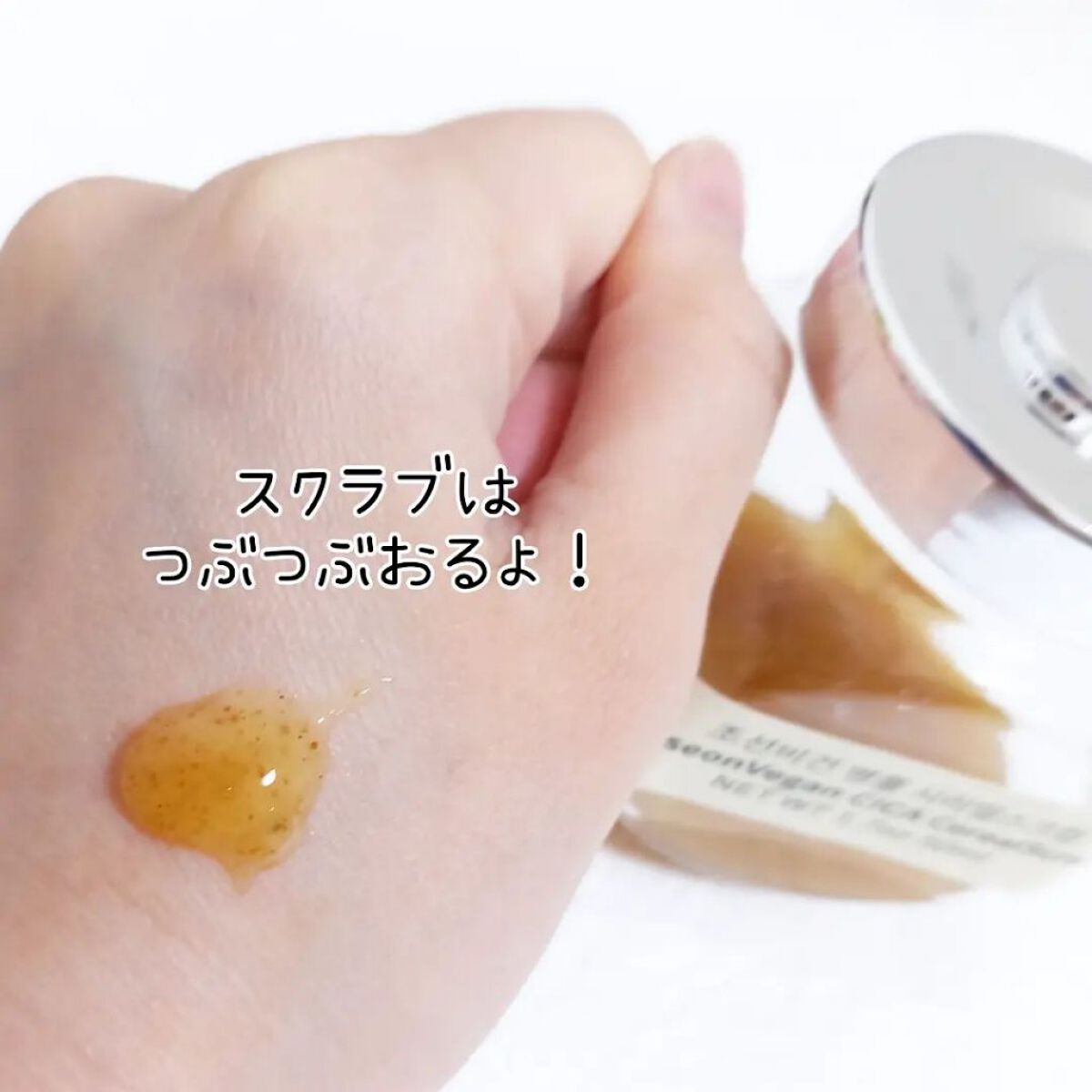 使用方法やパッケージまで 心から「私」と「地球」の両方の健康を考えたブランド、ヨンジ🌎💚 主な成分はCICA💚 CICA-Complexが主成分の、ヴィーガン-シカスキンケア!* スクラブはディープクレンジング+水分供給+鎮静効果の三重ケア。 クリームは水分&栄養供給+鎮静効果+肌バリア強化の三重ケア。 スクラブは洗い流すと、とてももっちり感を感じて心地よく癒されました! クリームは軽めのテクスチャーだけど馴染ませていくと、こっくり重めの仕上がりで、しっとり感を感じるとても好みの使用感でした!👏✨