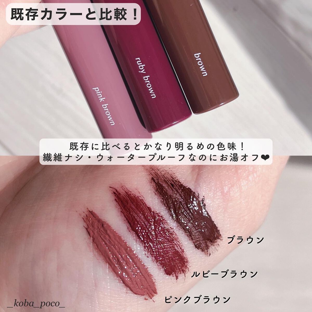 お湯+洗顔料でオフできるのに汗・水に強く、ダマになりにくくデイリーに使いやすい🙆♀️ 使用カラー:「ルビーブラウン」 甘すぎないくすみピンクで、可愛いもかっこいいも演出できる😎 ウォータープルーフタイプなのに、通常洗顔で簡単オフできるスグレモノ!なめらかな書き心地も使いやすくて◎