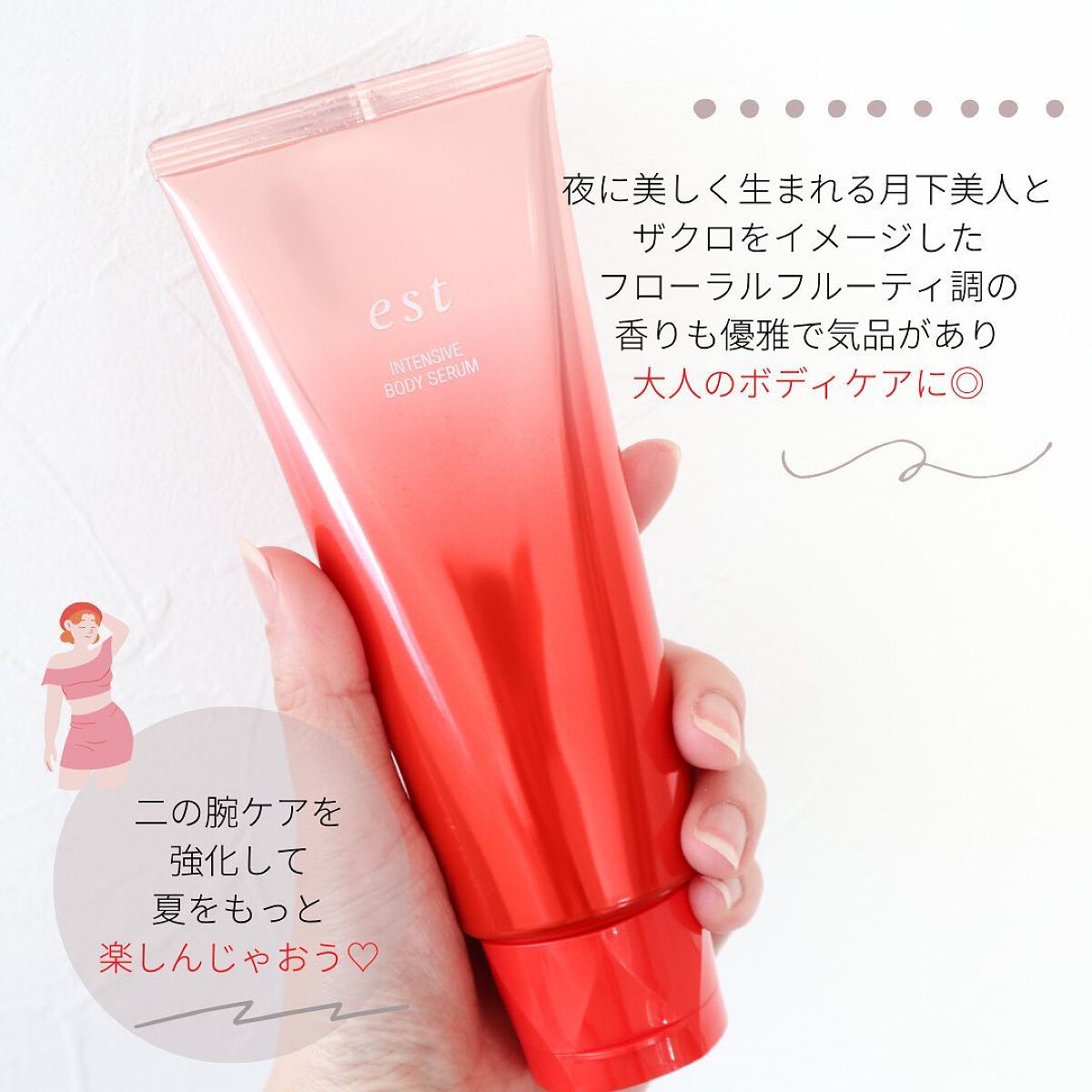 - 顔レベルのスキンケア技術を、ボディにも。 顔とボディ、日頃のお手入れの差が「肌」に出ていませんか。 そんなあなたにこそ、ボディ用のエイジングケア*セラムを。 フェイスケアで培ったエスト先進のテクノロジーを応用し、みずみずしいハリ肌へと導きます。 毎日のお手入れで、顔からボディまで、ひとつづきの美しさを。 エスト先進のスキンケア成分配合 ●AP コンプレックス(保湿:ローズマリーエキス、フィトスフィンゴシン、ソルビトール) ●エスト独自成分 ATP スピラル(保湿:ヒバマタエキス、月下香培養エッセンス(チューベロース多糖体)、グリセリン)