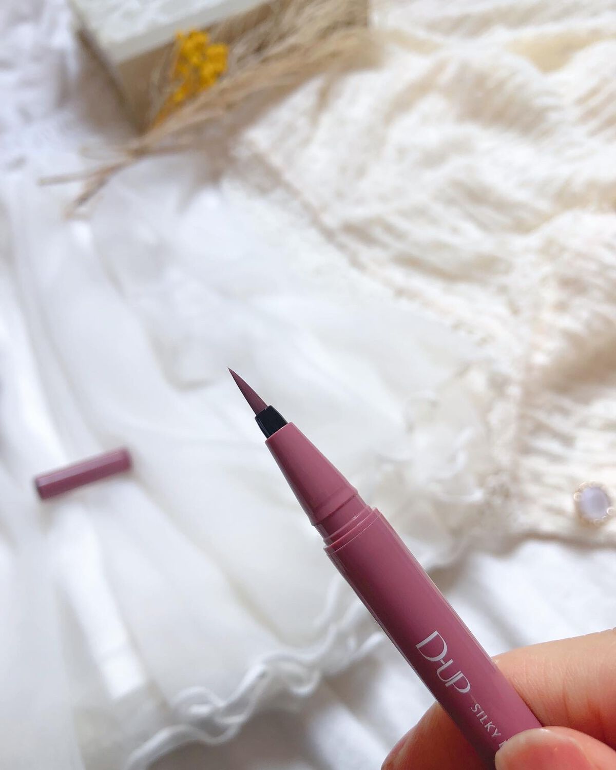 お湯+洗顔料でオフできるのに汗・水に強く、ダマになりにくくデイリーに使いやすい🙆♀️ 使用カラー:「ルビーブラウン」 甘すぎないくすみピンクで、可愛いもかっこいいも演出できる😎 ウォータープルーフタイプなのに、通常洗顔で簡単オフできるスグレモノ!なめらかな書き心地も使いやすくて◎