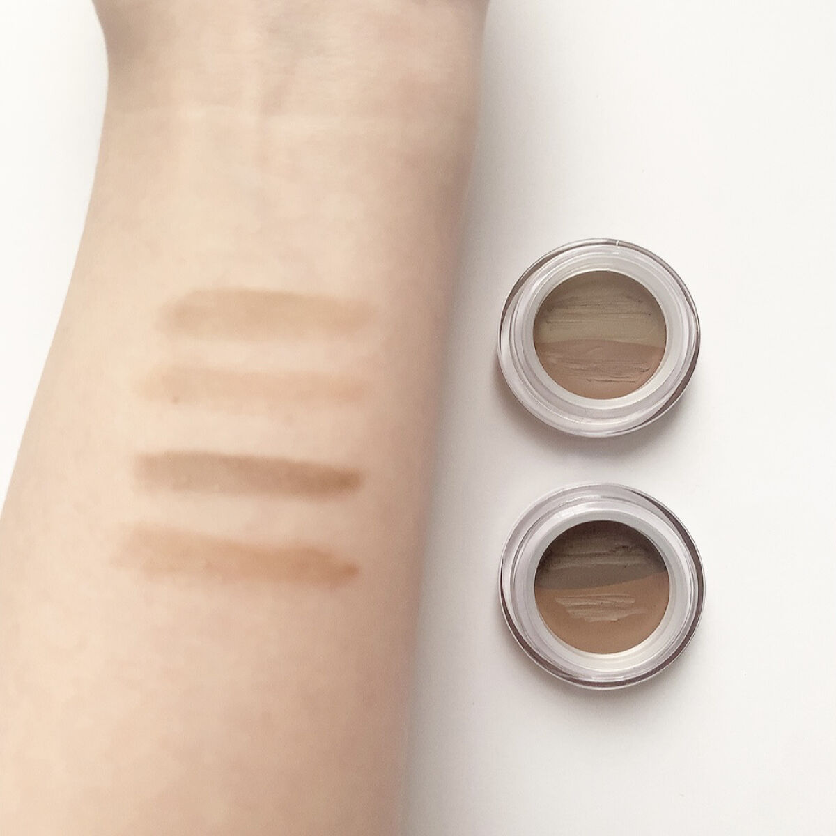 2色ずつ入ってるので混ぜても使えちゃう💖 ちょっと不器用な私には使いづらかったけど、コレ慣れたらチョンチョン!って簡単に描けそう︎︎👍 汗・皮脂に強くて時間が経っても眉尻落ちなかったのが嬉しい♡