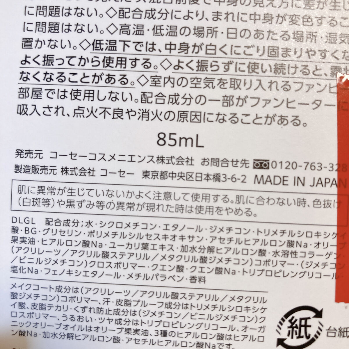 - メイクキープ力がパワーアップ! メイクの仕上げにサッとひと吹き、化粧くずれを防ぐふんわりミストスプレー。 メイクキープ力がパワーアップ! ウォータープルーフ効果に加え、皮脂くずれ防止効果で驚きのメイクキープ力を発揮します。 ● さらに細かくふんわりと噴霧するミストに進化。均一な一枚の膜を作ります。 ● つけたての美しいメイクを長時間持続。 メイクコート成分配合。しっかりとメイクを固定しながら、顔の動きに合わせて伸縮するため、時間がたってもメイクがヨレにくく、美しい仕上がりを長時間持続します。 ● マスク着用によるメイクのヨレを防止し、マスクにメイクが付きにくくします。 ● メイクくずれから守るだけでなく、大気中の微粒子(ちり・ほこりなど)からも肌をまもります。 ● 汗や水、皮脂まではじくため、メイクによるテカリやにじみをしっかりと抑えます。 ● 保湿成分配合。うるおいを与えて乾燥を防ぎます。 ● フレッシュフローラルの香り ● 無着色 <ご注意> 低温下では中身が白く固まりやすくなりますが、 常温に戻すために湯せんや電子レンジなどを使って高い温度で温めると品質が変化してしまいます。 さらには容器が変形・破損することで、やけどや怪我の恐れがあります。 大変危険ですので、湯せんや電子レンジなどを使って加熱することは絶対にお避けください。