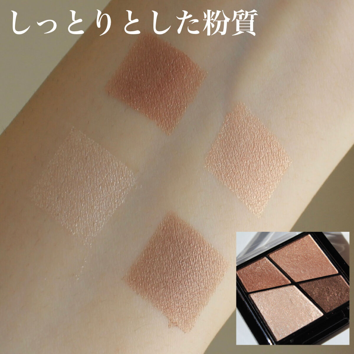 - なめらかな粉質でまぶたにピタッと密着するパウダーアイシャドウ。 4色の組み合わせで立体的な目元を演出できるパレットです。 #なめらかパウダー #つややか発色