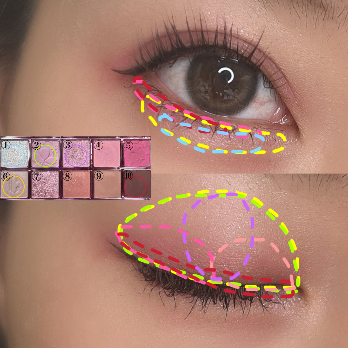 - ひとつのパレットにマット、シマー、グリッターなど多様な質感を贅沢に使用。塗る順序やカラーの組み合わせを変えるだけでデイリーメイクにも、特別な日のお出かけメイクにもできる優れもの。また粉飛びせず、まぶたにしっかり密着します。