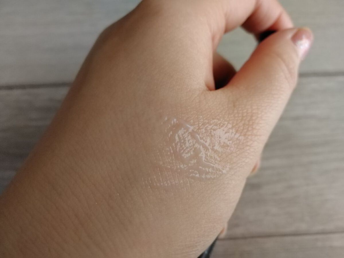 ツヤツヤ仕上がりというよりは、ほのツヤ。表面はサラッと仕上がり。 茹でて少し時間の経った、マットだけど表面はツルッとした感じの方が正しいと思う。 白玉肌成分と呼ばれるグルタチオンなどの美容成分も配合されてて、スキンケア効果が高いらしい