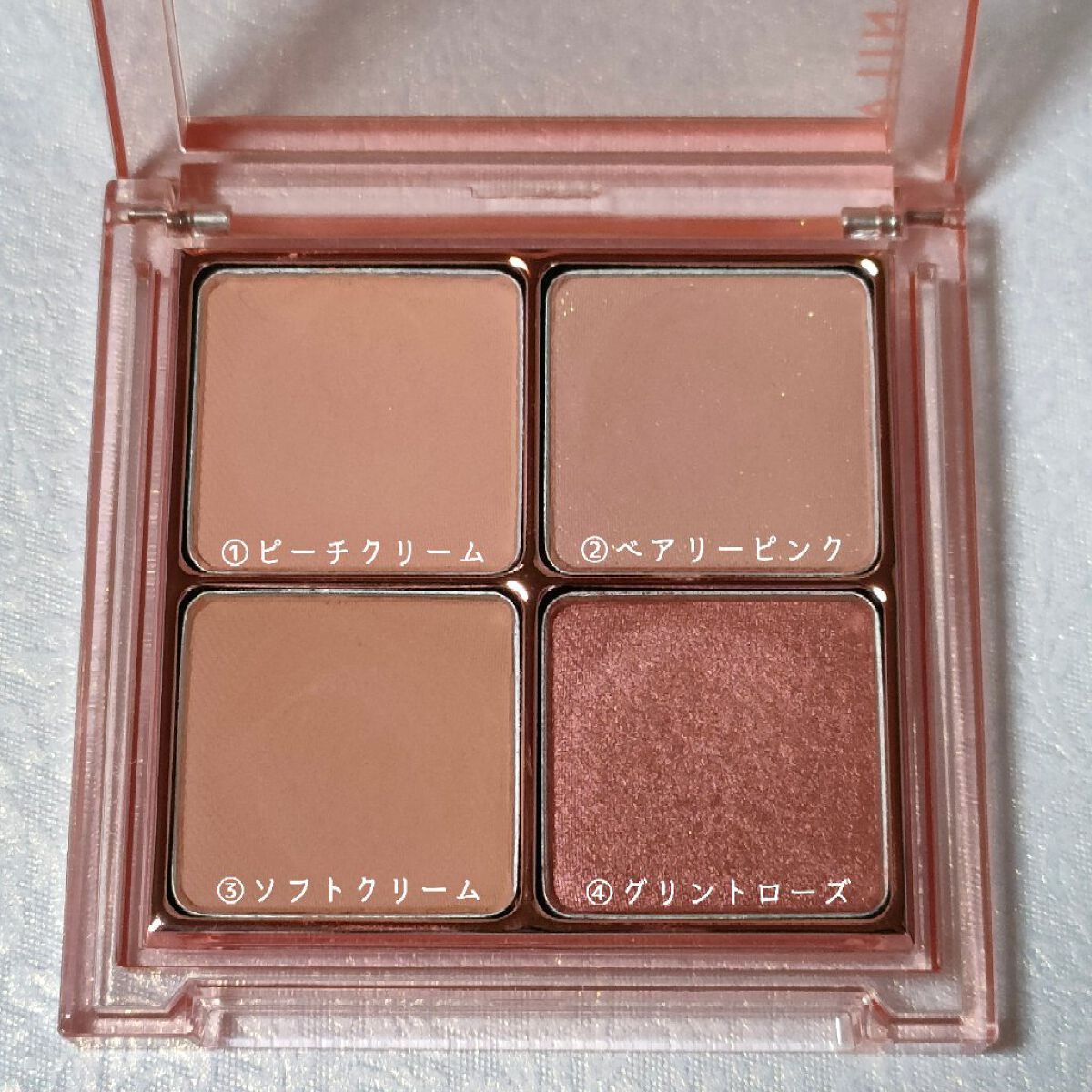 発色は淡いけど塗るとパッと顔が明るくなってザ・春🌸🌼って感じで最高にかわいい このアイシャドウを使うと疲れてる時に鏡を見ても顔が淀んで見えない🥺 イエローとピンクを混ぜて塗るとシェルピンクみたいな発色になってオススメ◎ ベージュトーンアイシャドウの中で一番のお気に入りカラー! この価格でこのかわいさってなかなか無いのでは?🥹 これからの季節にオススメです〜🌸