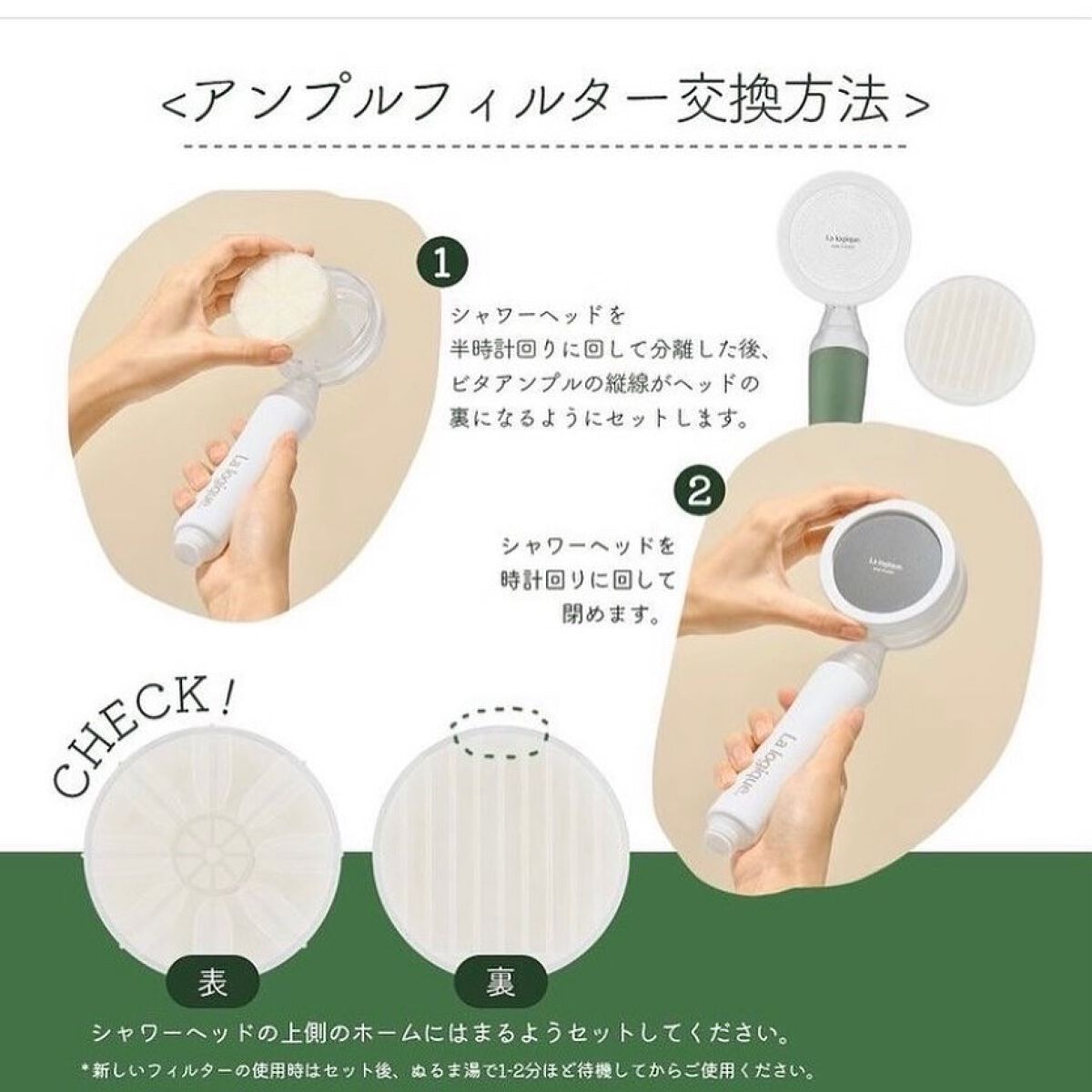 🤍アンプル1つをそのまま入れた、アンプルフィルターシャワーヘッド 昔からアジア人たちのなめらかな肌の秘訣であるお米の とぎ汁と、楊貴妃のしっとりとして弾力のある肌の秘訣である白きくらげがビタミンCアンプルに適用されています! セディメントフィルターは浄水器にも使用される安全な材質で製造され、微細な機雑組織で構成された二重フィルターカートリッジが深層ろ過方式で、水道水の中の様々な有害物質を綺晩にろ過してくれます。 アンプルフィルターの中のビタミンが、肌に有害な残留塩素を100%除去してくれます。 セディメントフィルターは、フィルターの替え時が色の変化でわかるんだそう、、!!!