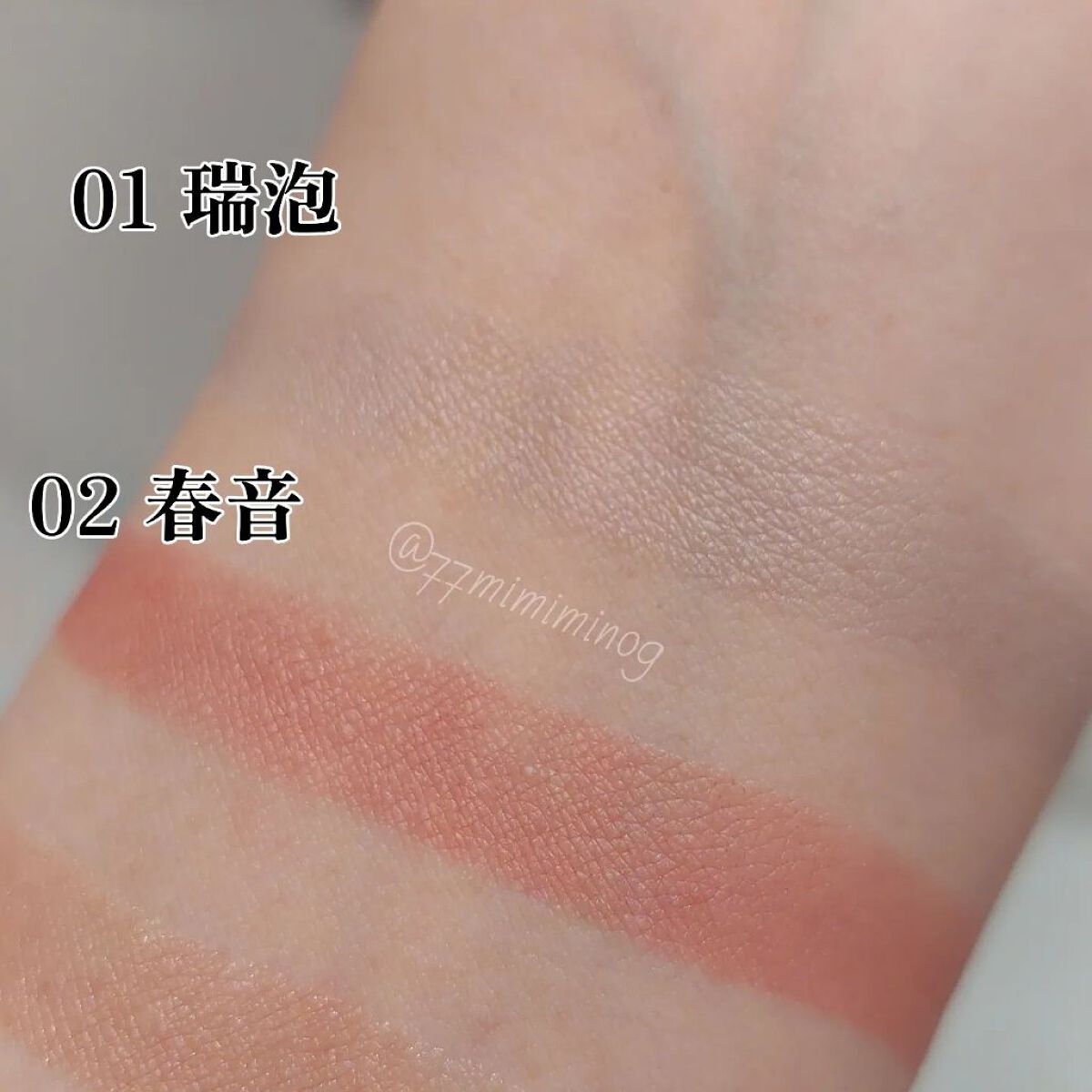 わずかにくすんでいることで甘くなり過ぎず上品で春らしいカラー 優しくふんわりと彩り、大人の可愛らしさを際立たせる パウダーチークではないようなじゅわっと発色も素敵 発色が良いので少なめにのせて調整するとのせすぎを防げます 粉質はしっとり 01 瑞泡 と組み合わせた時のピンクもとても可愛いです