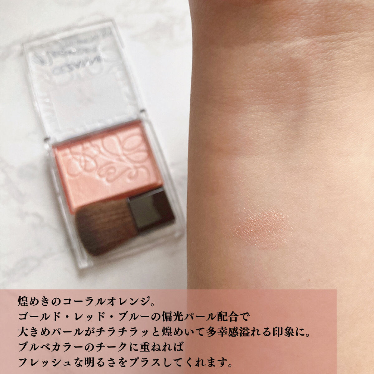 - ほのかな色みと光をレイヤードすることで、まるで光彩ヴェールをまとったようなニュアンスのある頬を演出するハイライト。 高輝度パール配合で面で濡れたような艶肌に。 単品でハイライトやチークとして艶をプラス。 お手持ちのチークやアイシャドウに重ねてニュアンスをチェンジ。 美容保湿成分(ヒアルロン酸Na、カミツレ花エキス、ラベンダー花エキス、ローズマリー葉エキス)配合。 肌あたりの良い毛量たっぷりのブラシ付。