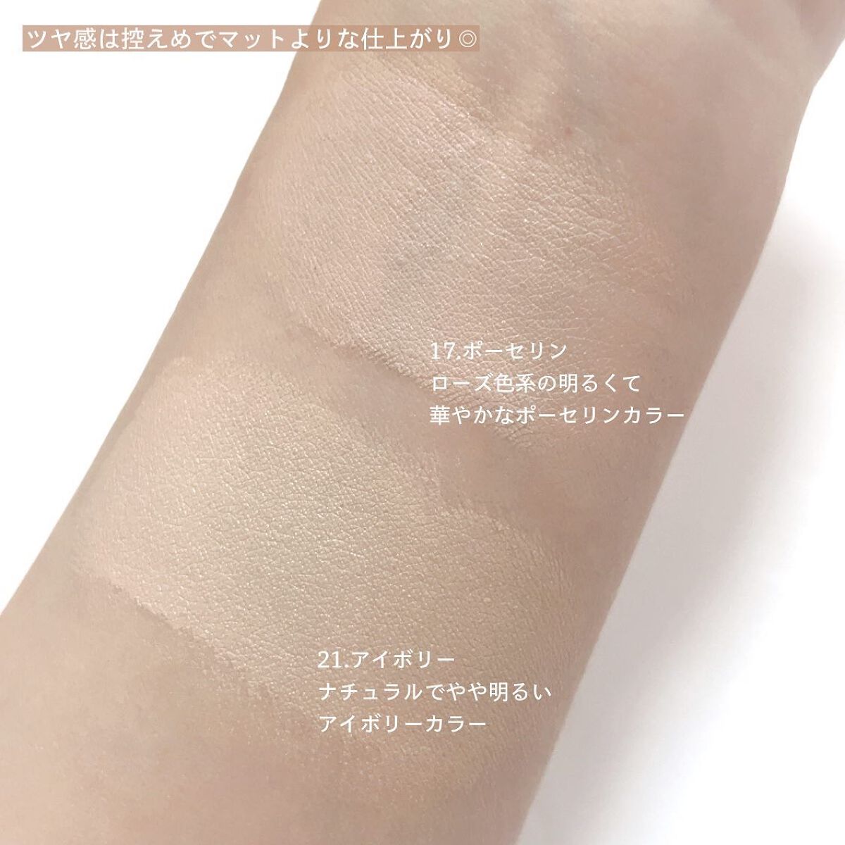 hinceさまからいただきました。17番は明るめなカラーを選ぶ私にも明るく感じ、21番がしっくりと🫶10代20代と若い世代なら韓国のアイドルみたいで17番も可愛いかも♩本当にちょっとパフにファンデーションを取っただけで、全顔に広げられる...