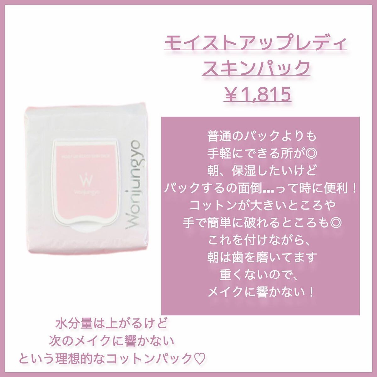 Wonjungyo ウォンジョンヨ モイストアップレディスキンパック DM N | 1,980円 |