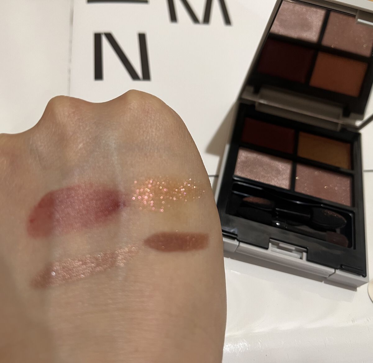 色はかなり悩んで悩んでこちらの色に、大人がオフィスメイクでも使えるものを選びました。 ブルベなのですが、やっぱりときめいた色を纏いたいと思い、決断。 質感も、ラメ感もやはり、うっとりするほどいい。