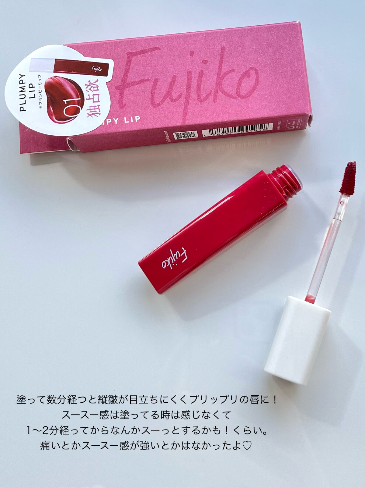 *Fujiko*プランピーリップ01独占欲パーンと膨らむプランプティントぷっくりと存在感のあるリップメイクで唇を主役に"メントキシプロパンジオール"採用血色、ボリューム感、クーリングを演出〜✨ずっと気になっていたフジコのフランピーリップ01独...