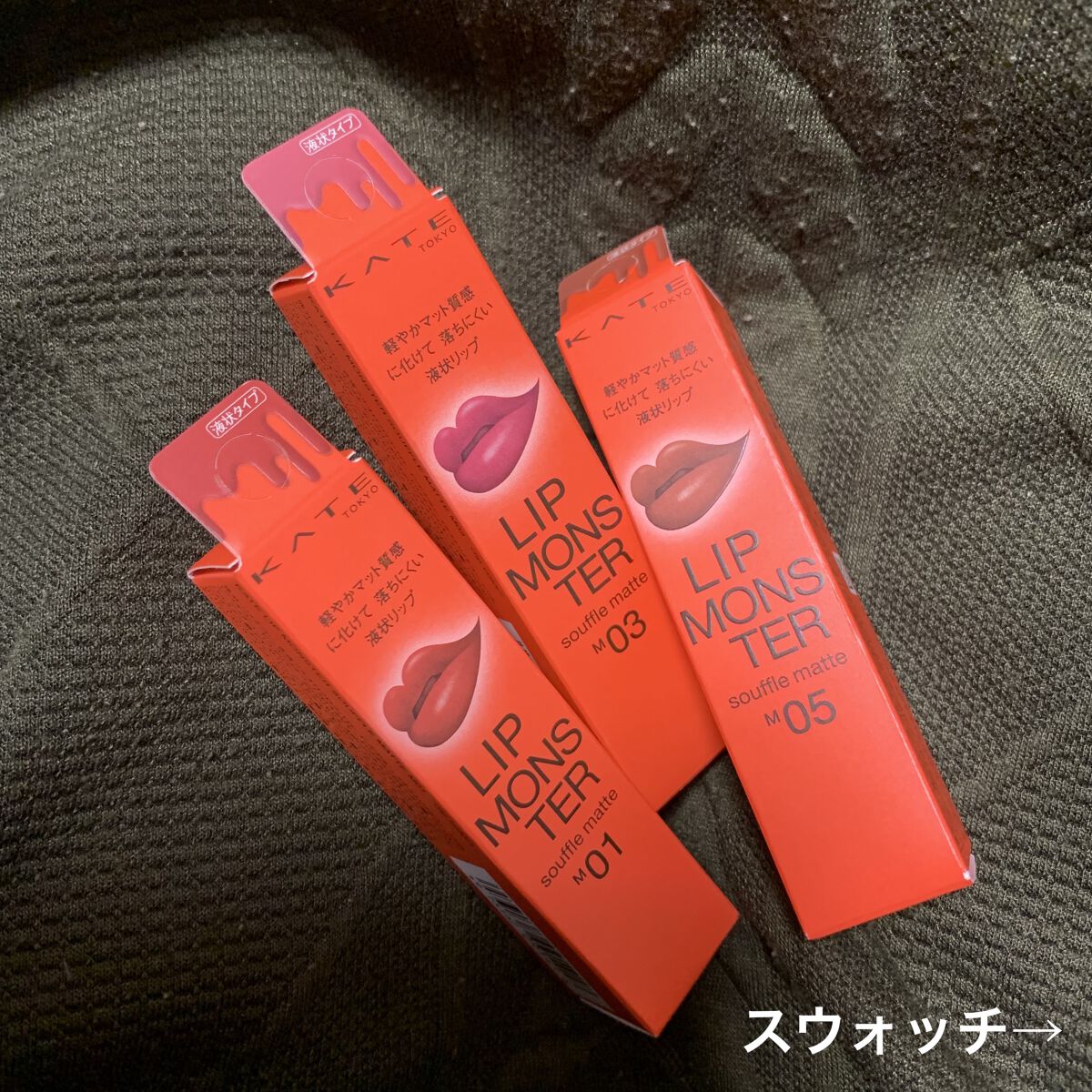 #提供❁.˚‧º‧‧º·˚.❁ リプモン スフレマット 4色スウォッチ❁.˚‧º‧‧º·˚.❁KATEリップモンスタースフレマットをお試し✧*˚₊‧ੈ✩おすすめポイントੈ✩‧₊˚*⋆つけたての色が長時間持続⋆ふんわりマット質感に変化する落...
