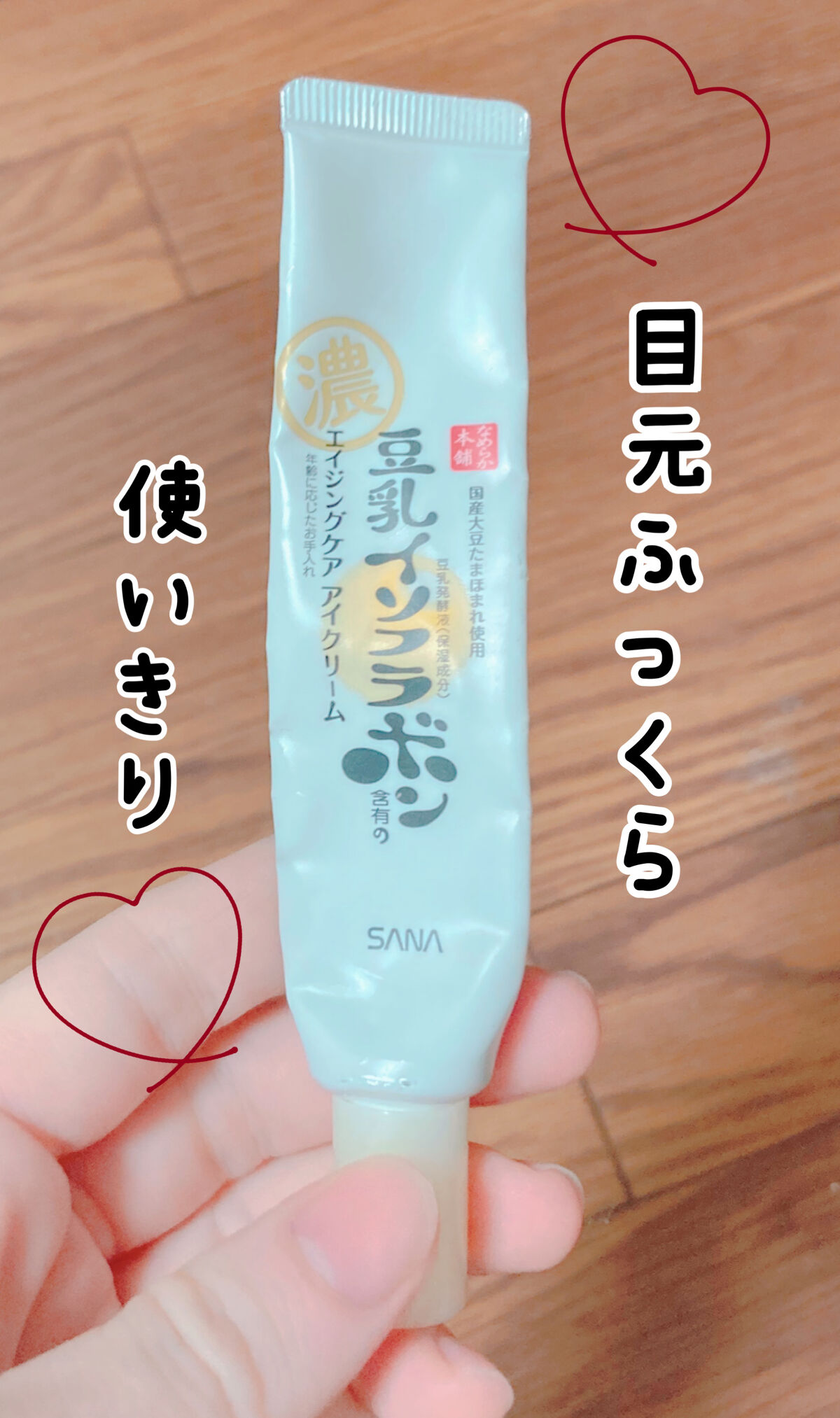 - ピュアレチノール※を新配合!濃厚アイクリームでもっちりハリeyes ※ 保湿成分 「リンクルアイクリーム N」は、『なめらか本舗』オリジナルの豆乳発酵液*1に加え、ピュアレチノール*1とビタミンE誘導体*2を新配合したもっちりとしたハリのある目元に導く「アイクリーム」です。 密着ポリマーがお肌の上で均一な膜を形成し、目元のハリ感をサポート。 毎日のスキンケアに取り入れていただくことで、年齢の出やすい目元をしっかりケアします。 〔①ピュアレチノール*1×豆乳発酵液*1×ビタミンE誘導体*2配合〕 「なめらか本舗」オリジナルのイソフラボン含有の豆乳発酵液*1に加え、ピュアレチノール*1を新配合。 さらに、ビタミンE誘導体(TPNaⓇ)*2も配合し、年齢の出やすい目元をしっかりケアします。 ・ピュアレチノール:ビタミンAの一種でハリのある目元に! ・豆乳発酵液:弾力感・うるおいを与えふっくらした目元に! ・ビタミンE誘導体(TPNaⓇ):お肌にぐんぐん浸透*3してイキイキした目元に! 〔②密着ポリマーで目元にハリ感〕 密着ポリマーがお肌の上で均一な膜を形成します。もっちりとハリのある目元に導きます。 *1 保湿成分 *2 トコフェリルリン酸Na(保湿成分) *3 角層まで